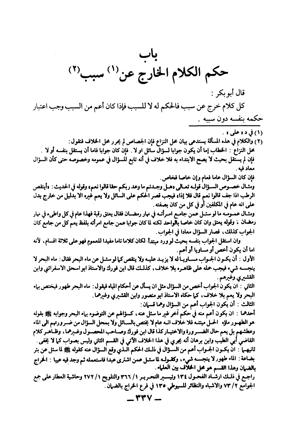 [بَاب حُكْمُ الْكَلَامِ الْخَارِجِ عَنْ سَبَبٍ]