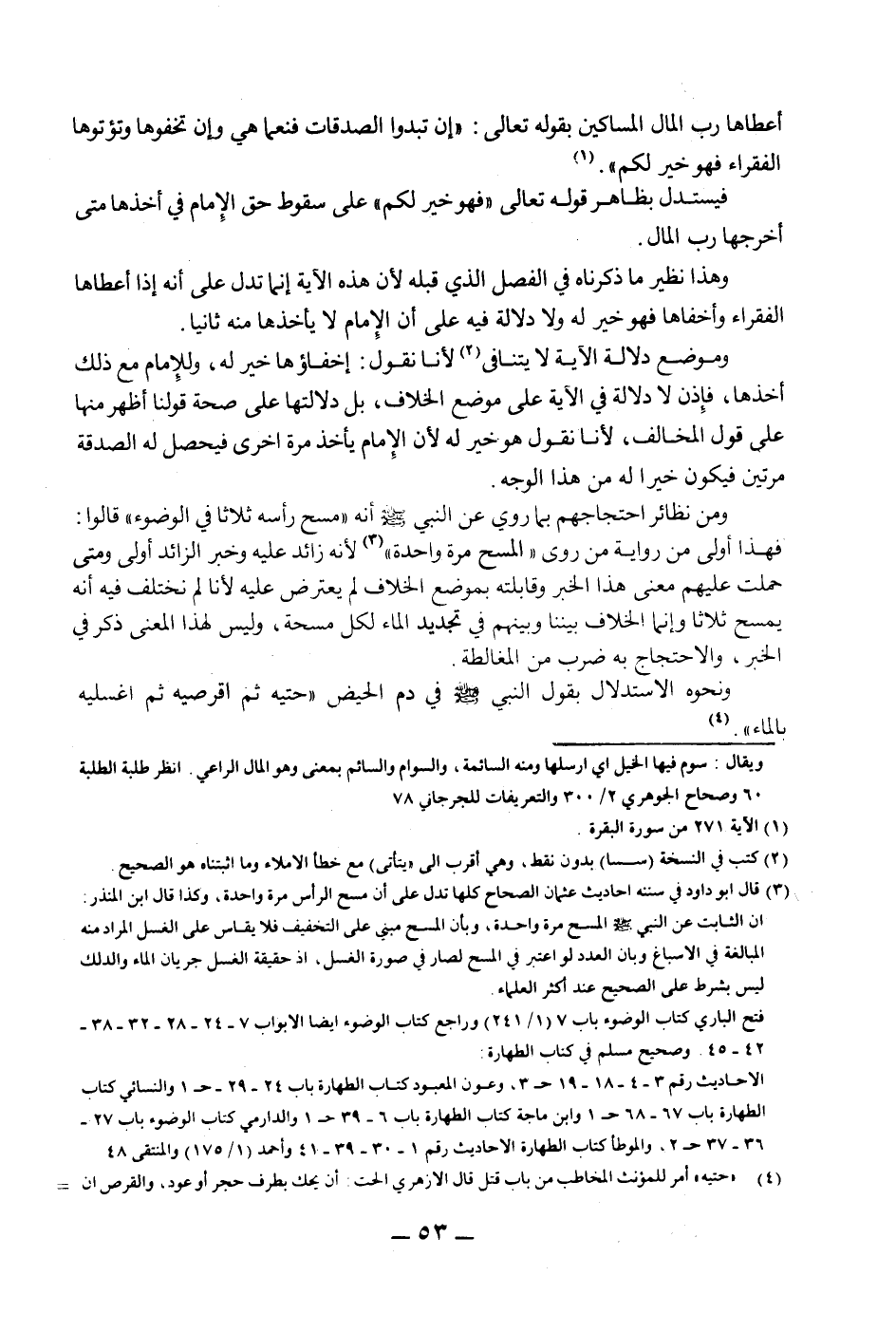 أَعْطَاهَا رَبُّ الْمَالِ الْمَسَاكِينَ بِقَوْلِهِ تَعَالَى: {إنْ تُبْدُوا الصَّدَقَاتِ فَنِعِمَّا هِيَ وَإِنْ تُخْفُوهَا وَتُؤْتُوهَا الْفُقَرَاءَ فَهُوَ خَيْرٌ لَكُمْ} [البقرة: 271] . فَيَسْتَدِلُّ بِظَاهِرِ قَوْله تَعَالَى {فَهُوَ خَيْرٌ لَكُمْ} [البقرة: 271] عَلَى سُقُوطِ حَقِّ الْإِمَامِ فِي أَخْذِهَا مَتَى أَخْرَجَهَا رَبُّ الْمَالِ. وَهَذَا نَظِيرُ مَا ذَكَرْنَاهُ فِي الْفَصْلِ الَّذِي قَبْلَهُ لِأَنَّ هَذِهِ الْآيَةَ إنَّمَا تَدُلُّ عَلَى أَنَّهُ إذَا أَعْطَاهَا الْفُقَرَاءَ وَأَخْفَاهَا فَهُوَ خَيْرٌ لَهُ وَلَا دَلَالَةَ فِيهِ عَلَى أَنَّ الْإِمَامَ لَا يَأْخُذُهَا مِنْهُ ثَانِيًا. وَمَوْضِعُ دَلَالَةِ الْآيَةِ لَا يَتَنَافَى لِأَنَّا نَقُولُ: إخْفَاؤُهَا خَيْرٌ لَهُ، وَلِلْإِمَامِ مَعَ ذَلِكَ أَخْذُهَا، فَإِذَنْ لَا دَلَالَةَ فِي الْآيَةِ عَلَى مَوْضِعِ الْخِلَافِ، بَلْ دَلَالَتُهَا عَلَى صِحَّةِ قَوْلِنَا أَظْهَرُ مِنْهَا عَلَى قَوْلِ الْمُخَالِفِ، لِأَنَّا نَقُولُ هُوَ خَيْرٌ لَهُ لِأَنَّ الْإِمَامَ يَأْخُذُ مَرَّةً أُخْرَى فَيَحْصُلُ لَهُ الصَّدَقَةُ مَرَّتَيْنِ فَيَكُونُ خَيْرًا لَهُ مِنْ هَذَا الْوَجْهِ.