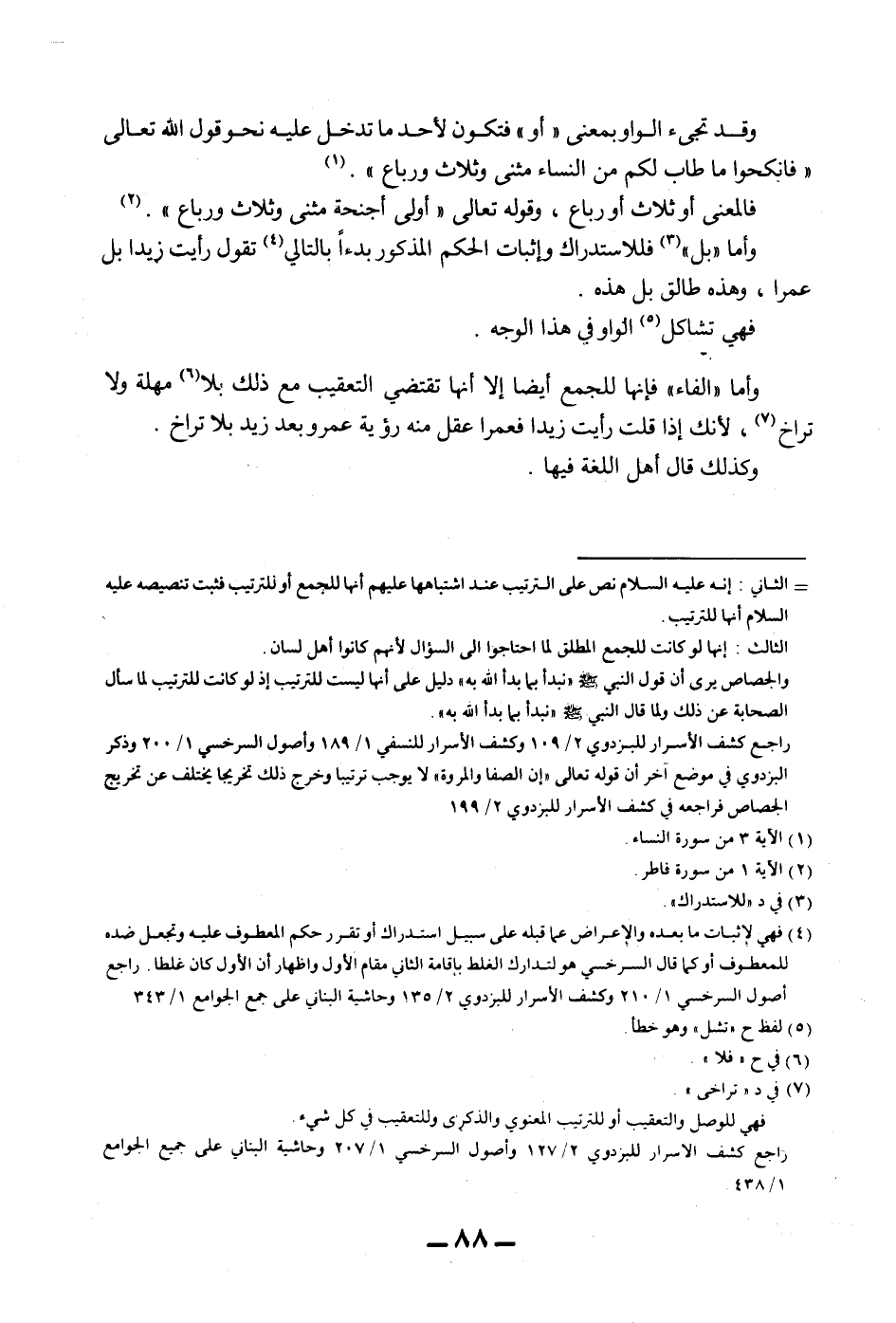 فَالْمَعْنَى أَوْ ثُلَاثَ أَوْ رُبَاعَ، وقَوْله تَعَالَى {أُولِي أَجْنِحَةٍ مَثْنَى وَثُلَاثَ وَرُبَاعَ} [فاطر: 1] .