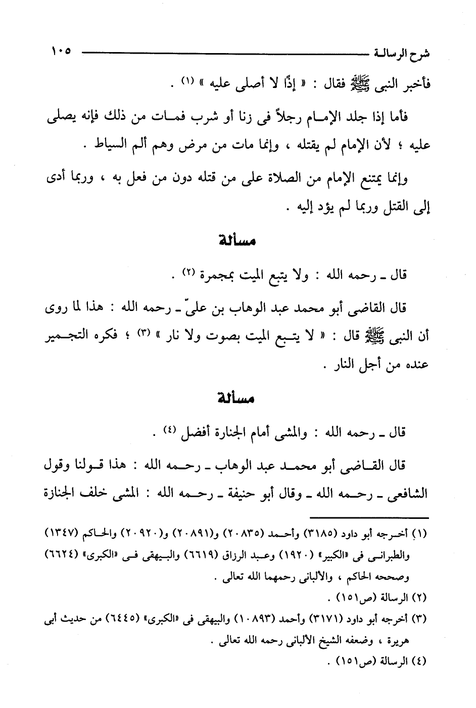 قال القاضي أبو محمد عبد الوهاب- رحمه الله: هذا قولنا وقول الشافعي- رحمه الله- وقال أبو حنيفة- رحمه الله: المشي خلف الجنازة