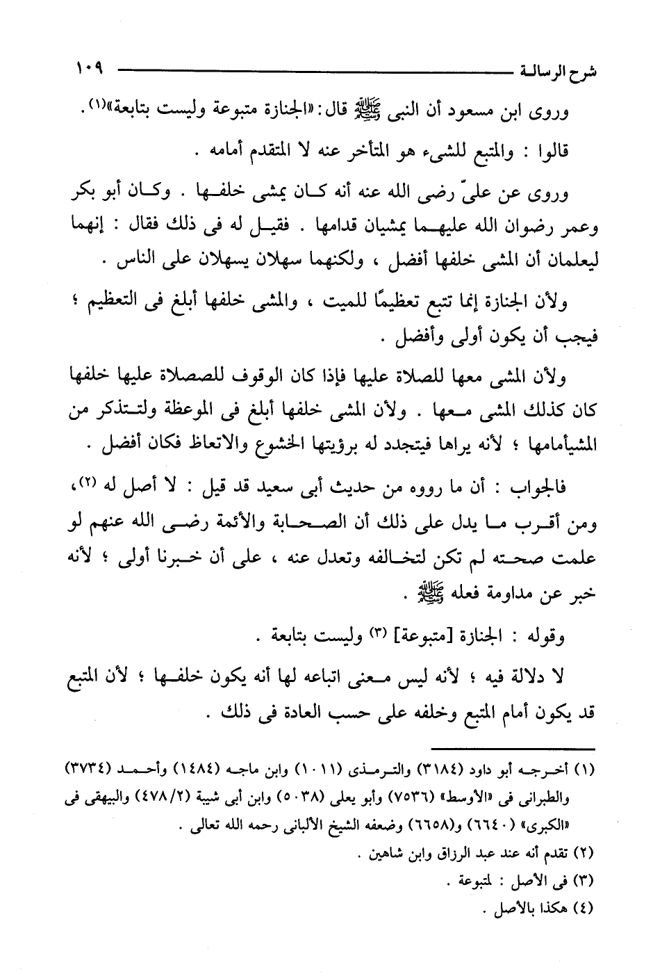 وروى ابن مسعود أن النبي صلى الله عليه وسلم قال: "الجنازة متبوعة وليست بتابعة".