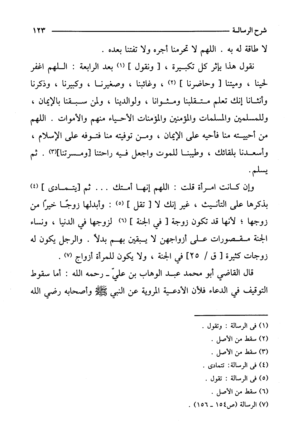 نقول هذا بإثر كل تكبيرة، [ونقول] بعد الرابعة: اللهم اغفر لحينا، وميتنا [وحاضرنا]، وغائبنا، وصغيرنا، وكبيرنا، وذكرنا وأنثانا إنك تعلم متقلبنا ومثوانا، ولوالدينا، ولمن سبقنا بالإيمان، وللمسلمين والمسلمات والمؤمنين والمؤمنات الأحياء منهم والأموات. اللهم من أحييته منا فأحيه على الإيمان، ومن توفيته منا فتوفه على الإسلام، وأسعدنا بلقائك، وطيبنا للموت واجعل فيه راحتنا [ومسرتنا]. ثم يسلم.