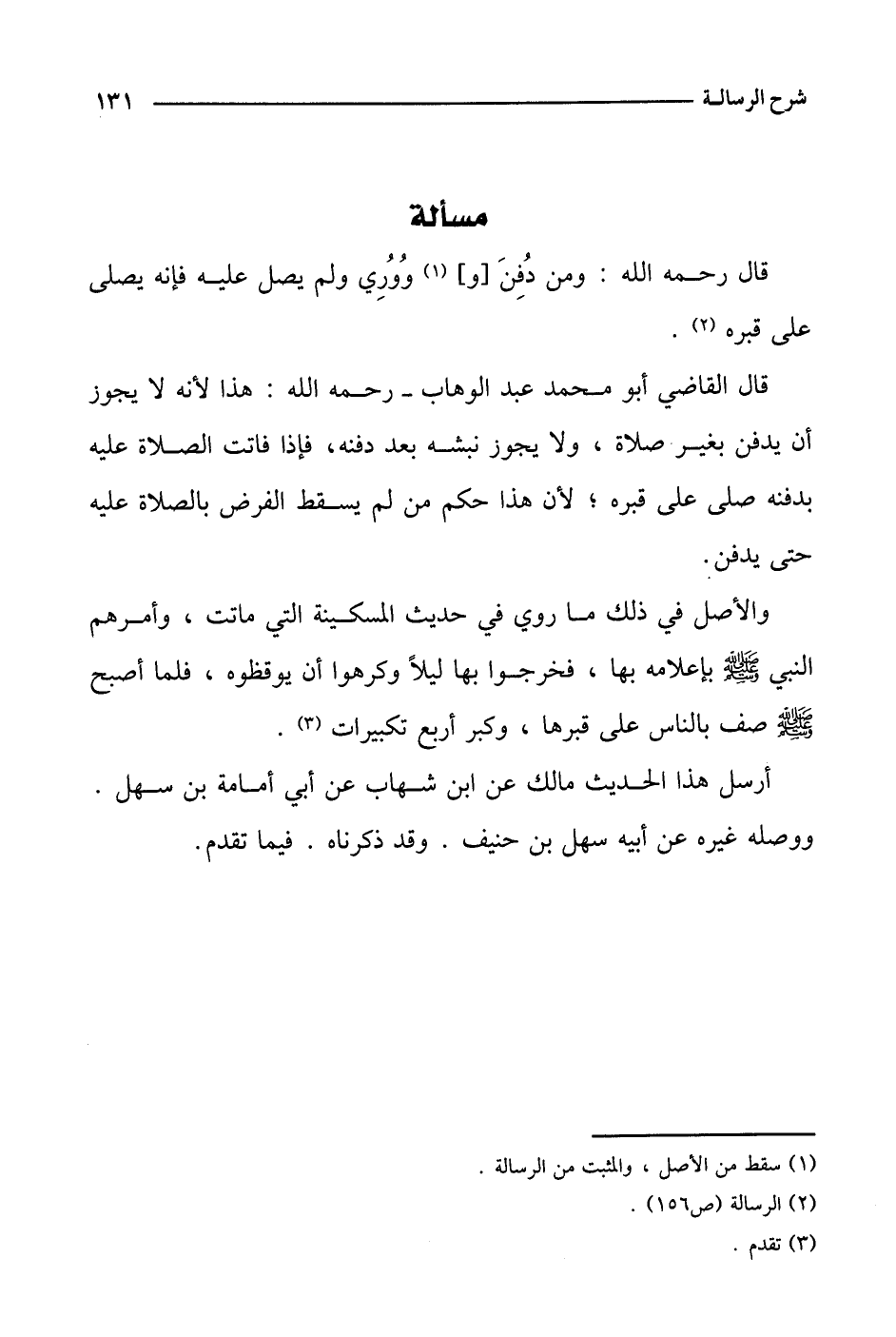 قال القاضي أبو محمد عبد الوهاب- رحمه الله: هذا لأنه لا يجوز أن يدفن بغير صلاة، ولا يجوز نبشه بعد دفنه، فإذا فاتت الصلاة عليه بدفنه صلى على قبره؛ لأن هذا حكم من لم يسقط الفرض بالصلاة عليه حتى يدفن.