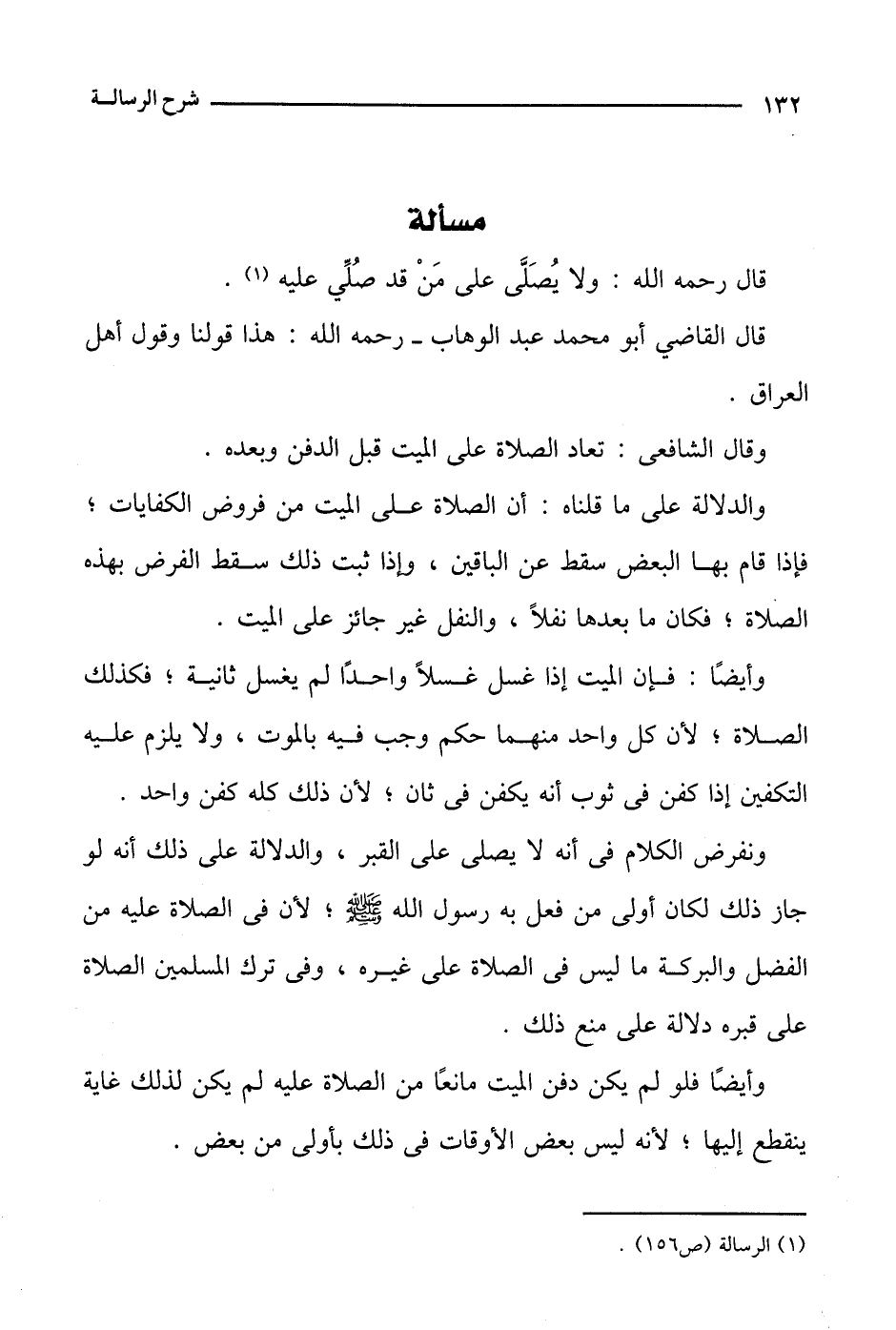 وأيضا: فإن الميت إذا غسل غسلا واحدا لم يغسل ثانية؛ فكذلك الصلاة؛ لأن كل واحد منهما حكم وجب فيه بالموت، ولا يلزم عليه التكفين إذا كفن في ثوب أنه يكفن في ثان؛ لأن ذلك كله كفت واحد.