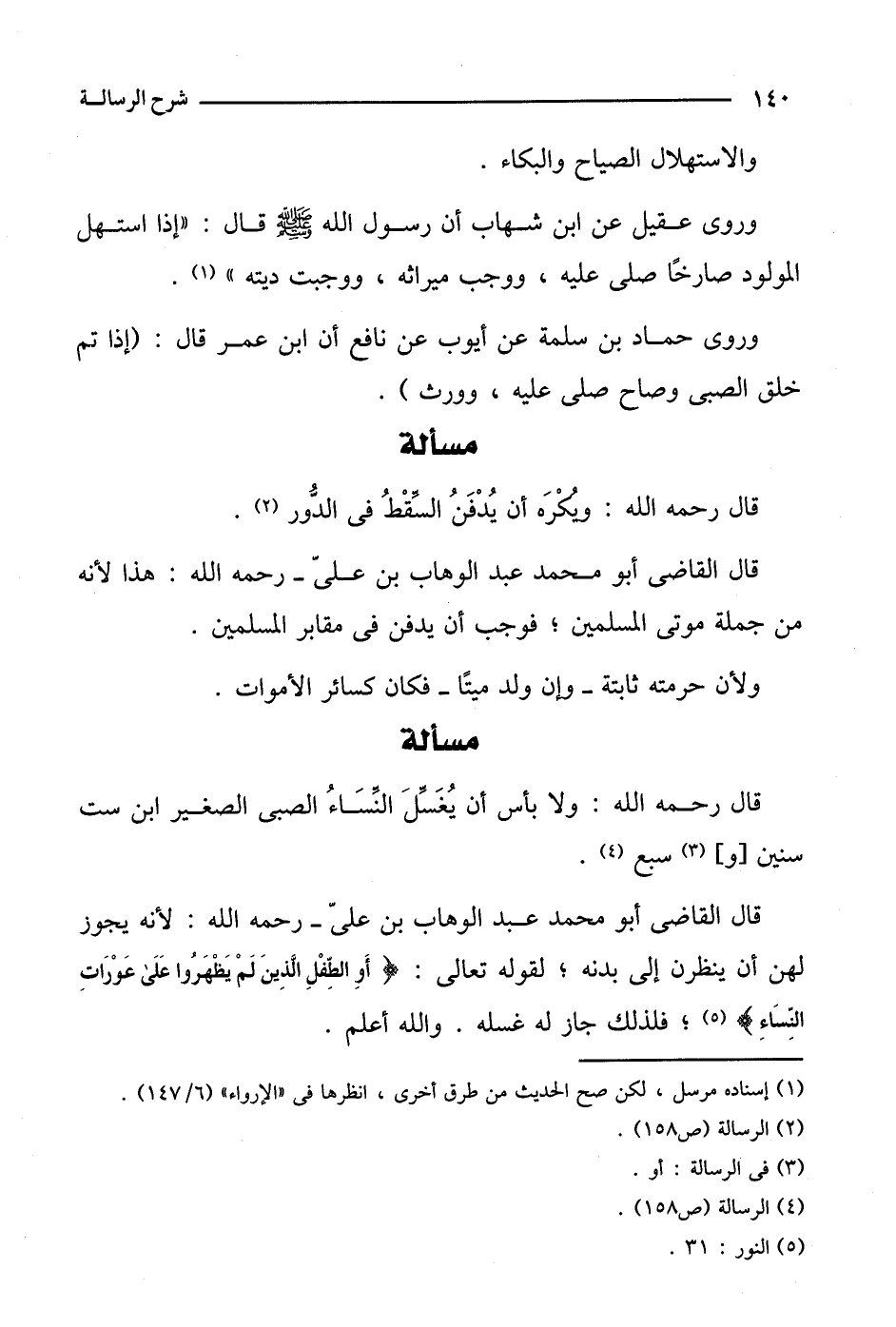 وروى حماد بن سلمة عن أيوب عن نافع أن ابن عمر قال: (إذا تم خلق الصبي وصاح صلى عليه، وورث).