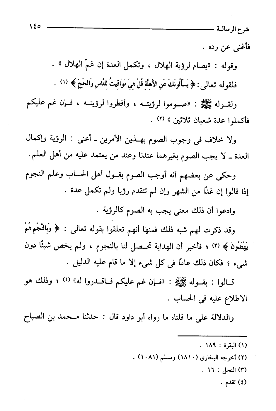 ولقوله صلى الله عليه وسلم: "صوموا لرؤيته، وأفطروا لرؤيته، فإن غم عليكم فأكملوا عدة شعبان ثلاثين".