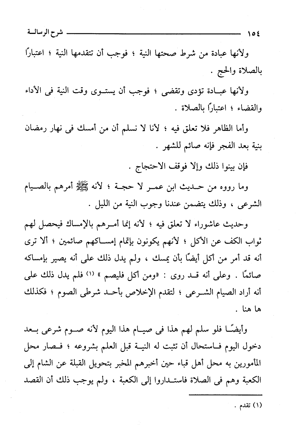 واعتبارهم بالنية قبل الفجر بعلة أنه ناو لصيامه غير صحيح؛ لأنه إذا نوى في بعض اليوم فهذه النية لا تتناول ما مضى؛ فلم يكن ناوياً لصيامه، وينتقض بالنذر والقضاء وبالنية في أمس اليوم وعلى أن المعنى في الأصل تقدم النية على الفعل (المنوي).