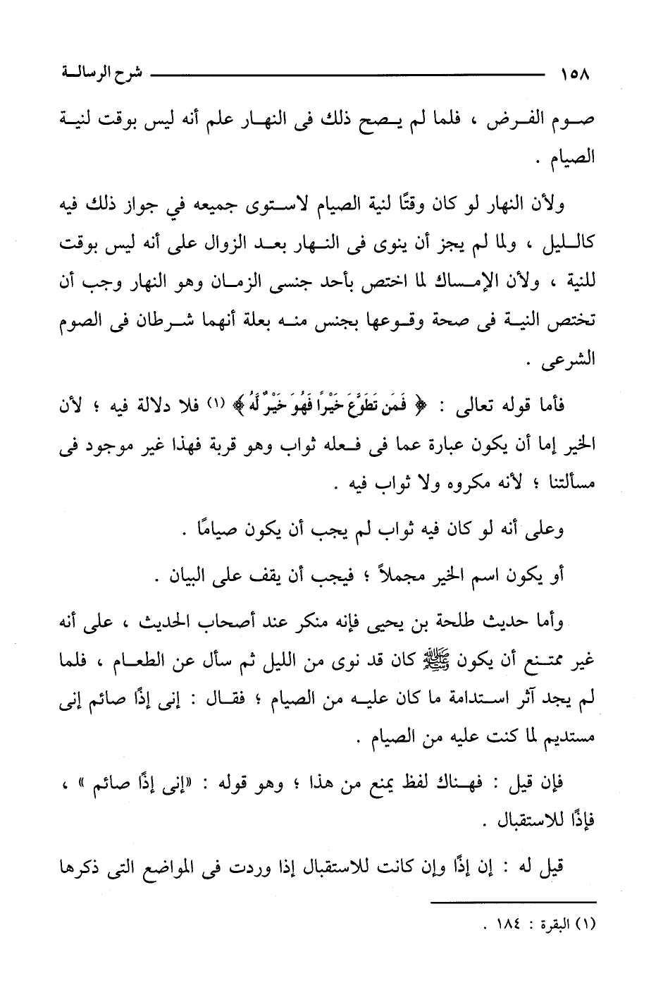 ولأن النهار لو كان وقت لنية الصيام لاستوى جميعه في جواز ذلك فيه كالليل، ولما لم يجز أن ينوى في النهار بعد الزوال على أنه ليس بوقت للنية، ولأن الإمساك لما اختص بأحد جنسي الزمان وهو النهار وجب أن تختص النية بصحة وقوعها بجنس منه بعلة أنهما شرطان في الصوم الشرعي.