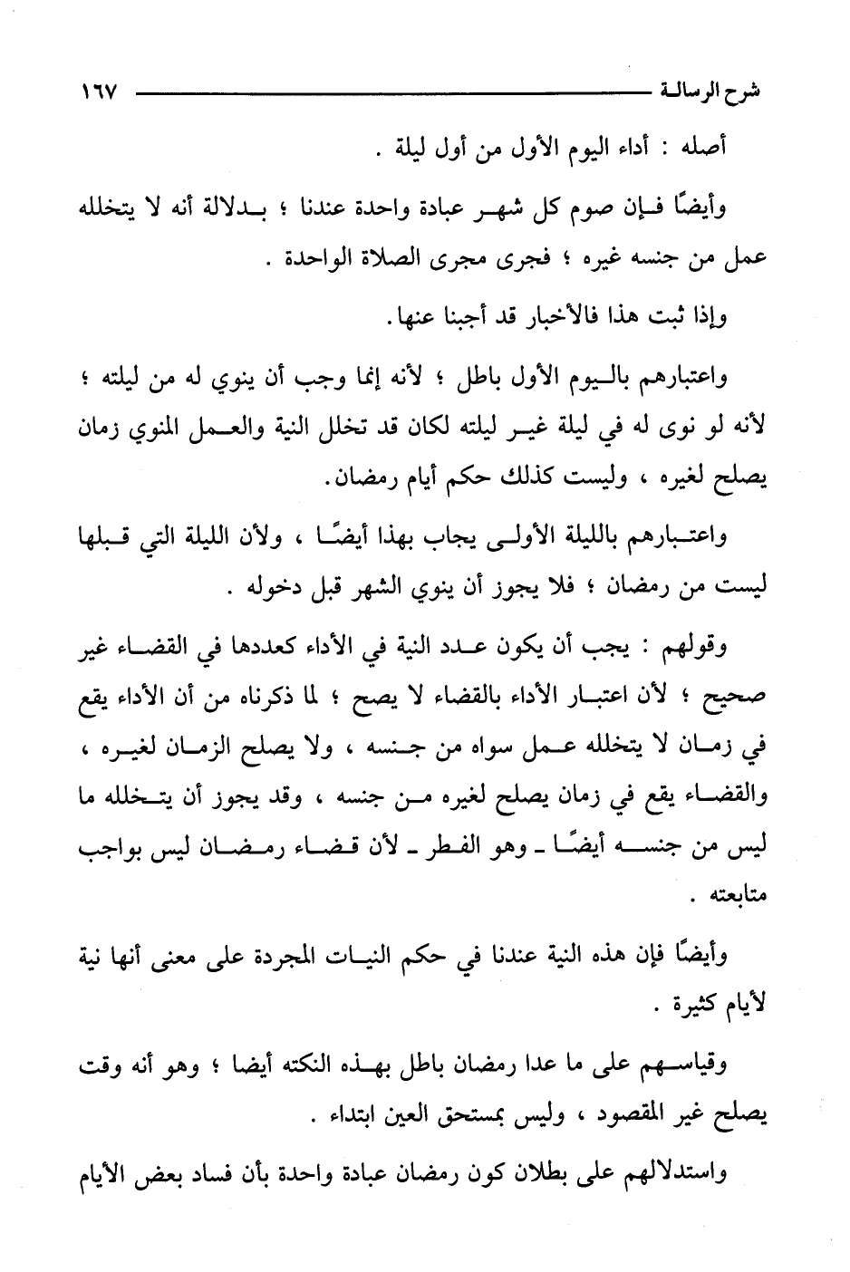 وقولهم: يجب أن يكون عدد النية في الأداء كعددها في القضاء غير صحيح؛ لأن اعتبار الأداء بالقضاء لا يصح؛ لما ذكرناه من أن الأداء يقع في زمان لا يتخلله عمل سواه من جنسه، ولا يصلح الزمان لغيره، والقضاء يقع في زمان يصلح لغيره من جنسه، وقد يجوز أن يتخلله ما ليس من جنسه أيضا- وهو الفطر- لأن قضاء رمضان ليس بواجب متابعته.