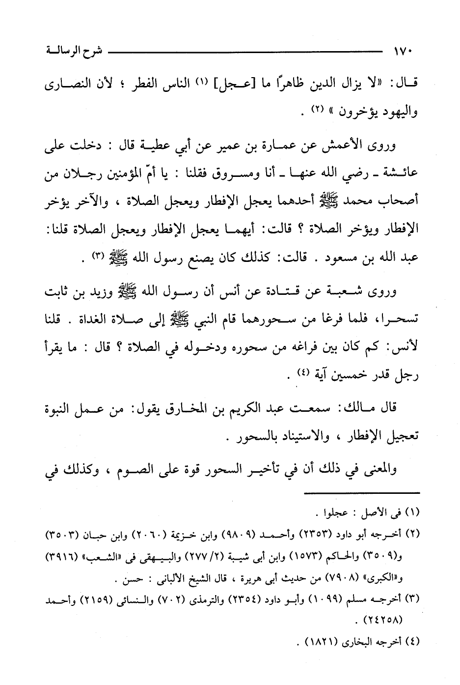 قال: "لا يزال الدين ظاهرا ما [عجل] الناس الفطر؛ لأن النصارى واليهود يؤخرون".