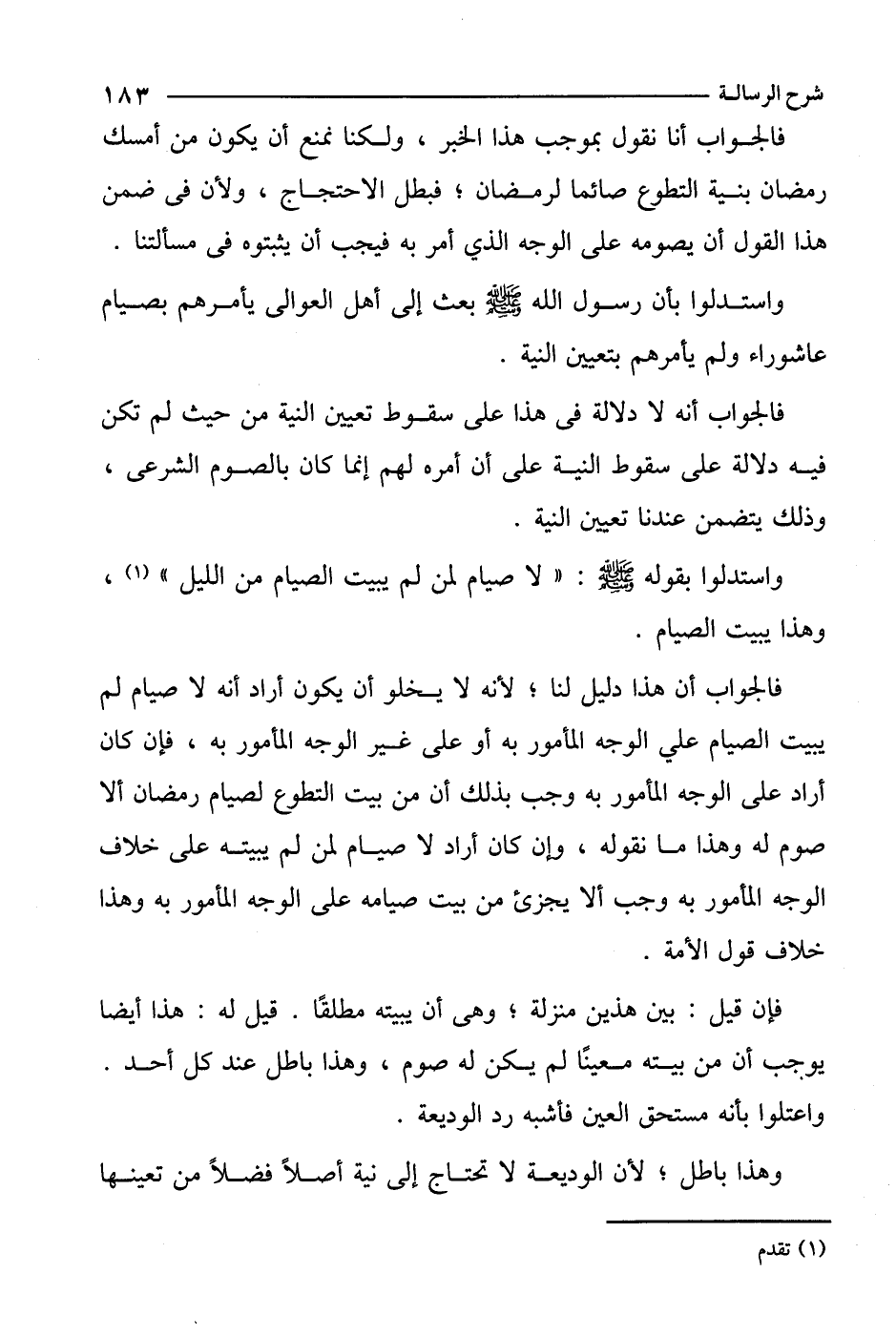 فالجواب أنه لا دلالة في هذا على سقوط تعيين النية من حيث لم تكن فيه دلالة على سقوط النية على أن أمره لهم إنما كان بالصوم الشرعي، وذلك يتضمن عندنا تعيين النية.