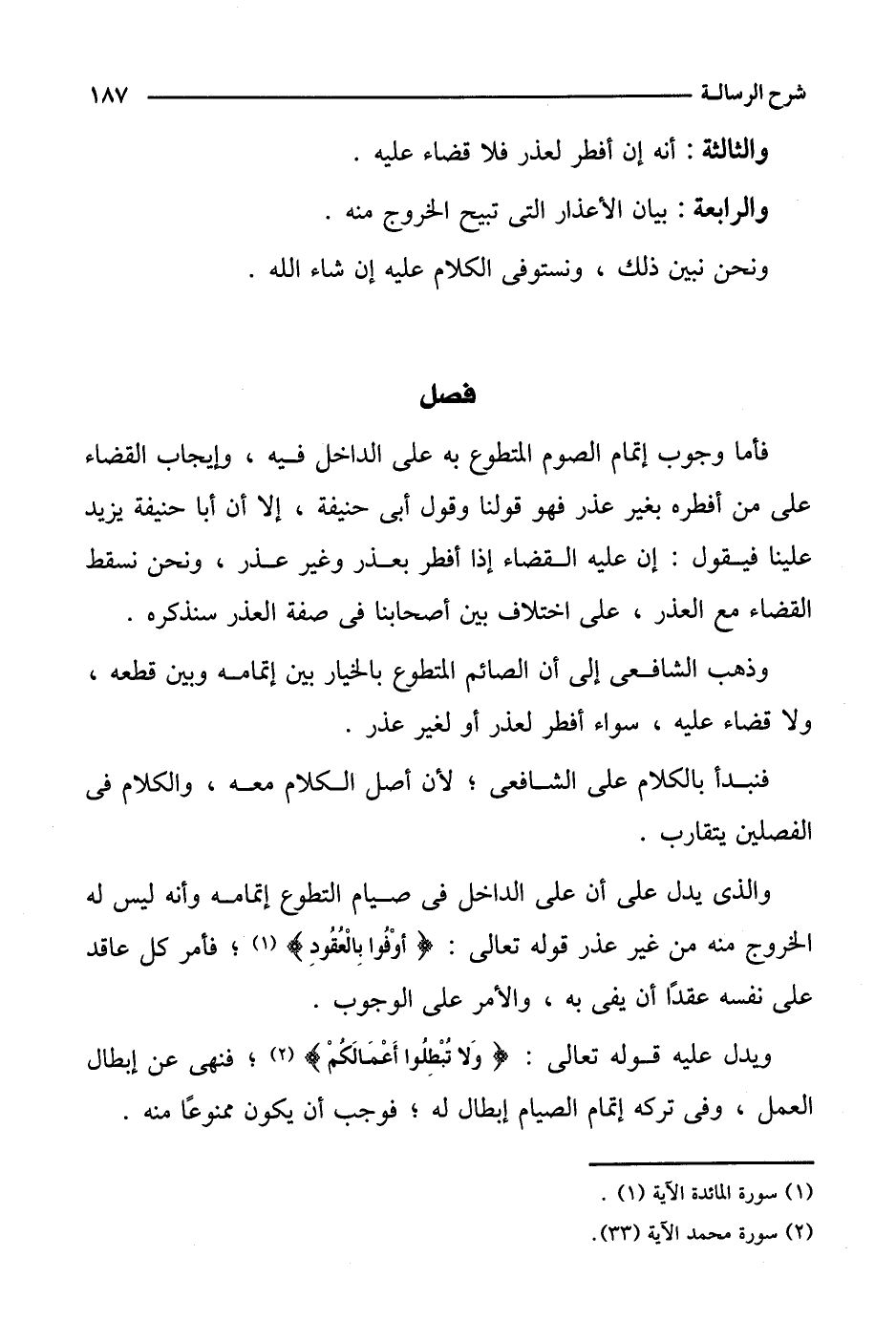 فأما وجوب إتمام الصوم المتطوع به على الداخل فيه، وإيجاب القضاء على من أفطره بغير عذر فهو قولنا وقول أبو حنيفة، إلا أن أبا حنيفة يزيد علينا فيقول: إن عليه القضاء إذا أفطر بعذر وغير عذر، ونحن نسقط القضاء مع العذر، على اختلاف بين أصحابنا في صفة العذر سنذكره.