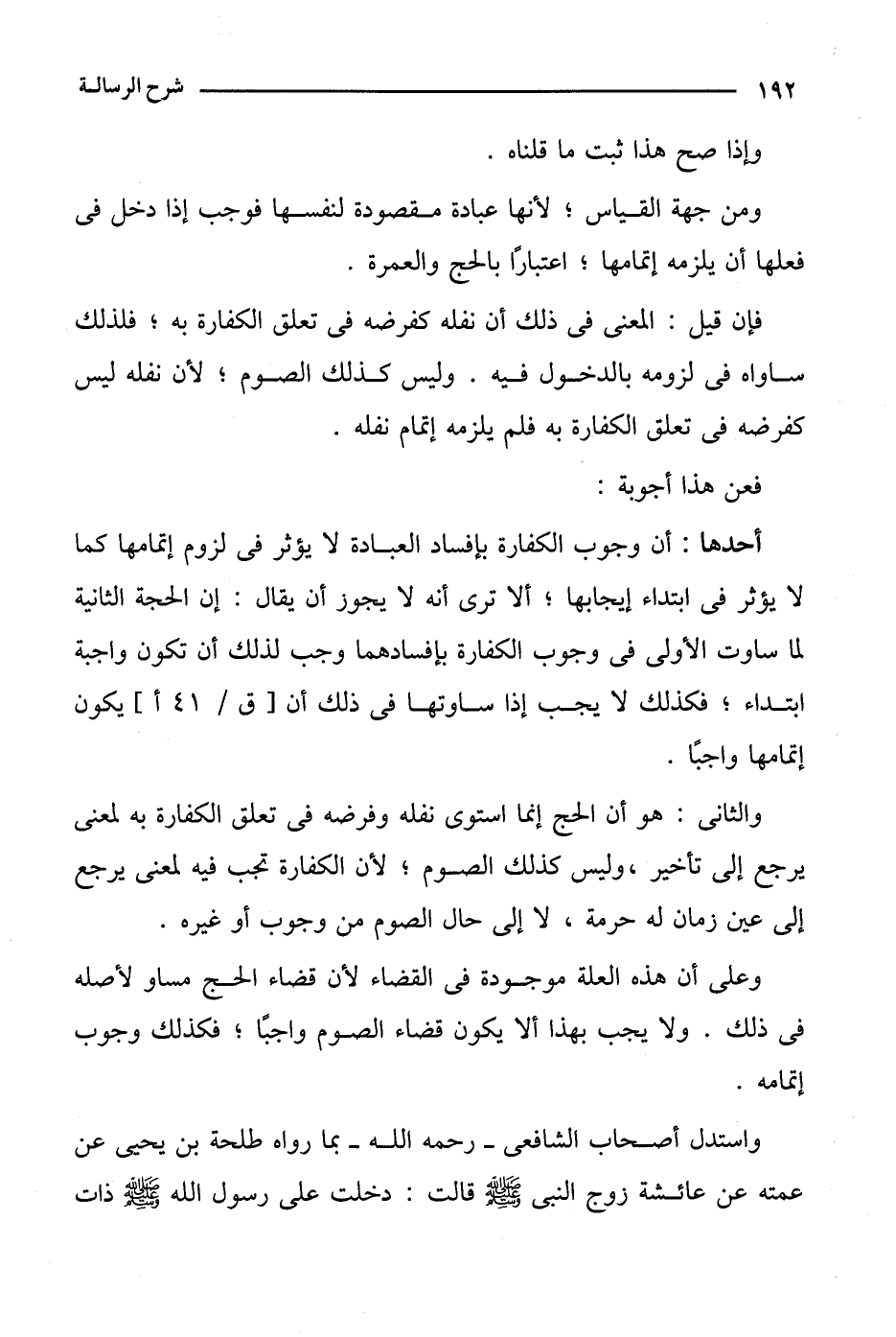 وعلى أن هذه العلة موجودة في القضاء لأن قضاء الحج مساو لأصله في ذلك. ولا يجب بهذا ألا يكون قضاء الصوم واجبا؛ فكذلك وجوب إتمامه.