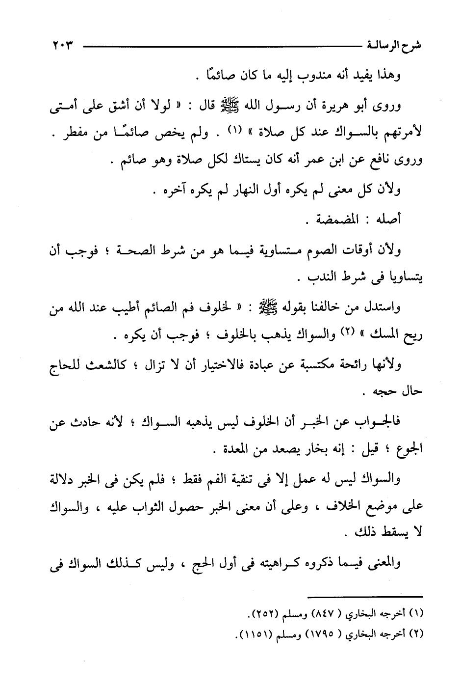 وروى أبو هريرة أن رسول الله صلى الله عليه وسلم قال: "لولا أن أشق على أمتي لأمرتهم بالسواك عند كل صلاة". ولم يخص صائما من مفطر. وروى نافع عن ابن عمر أنه كان يستاك لكل صلاة وهو صائم.