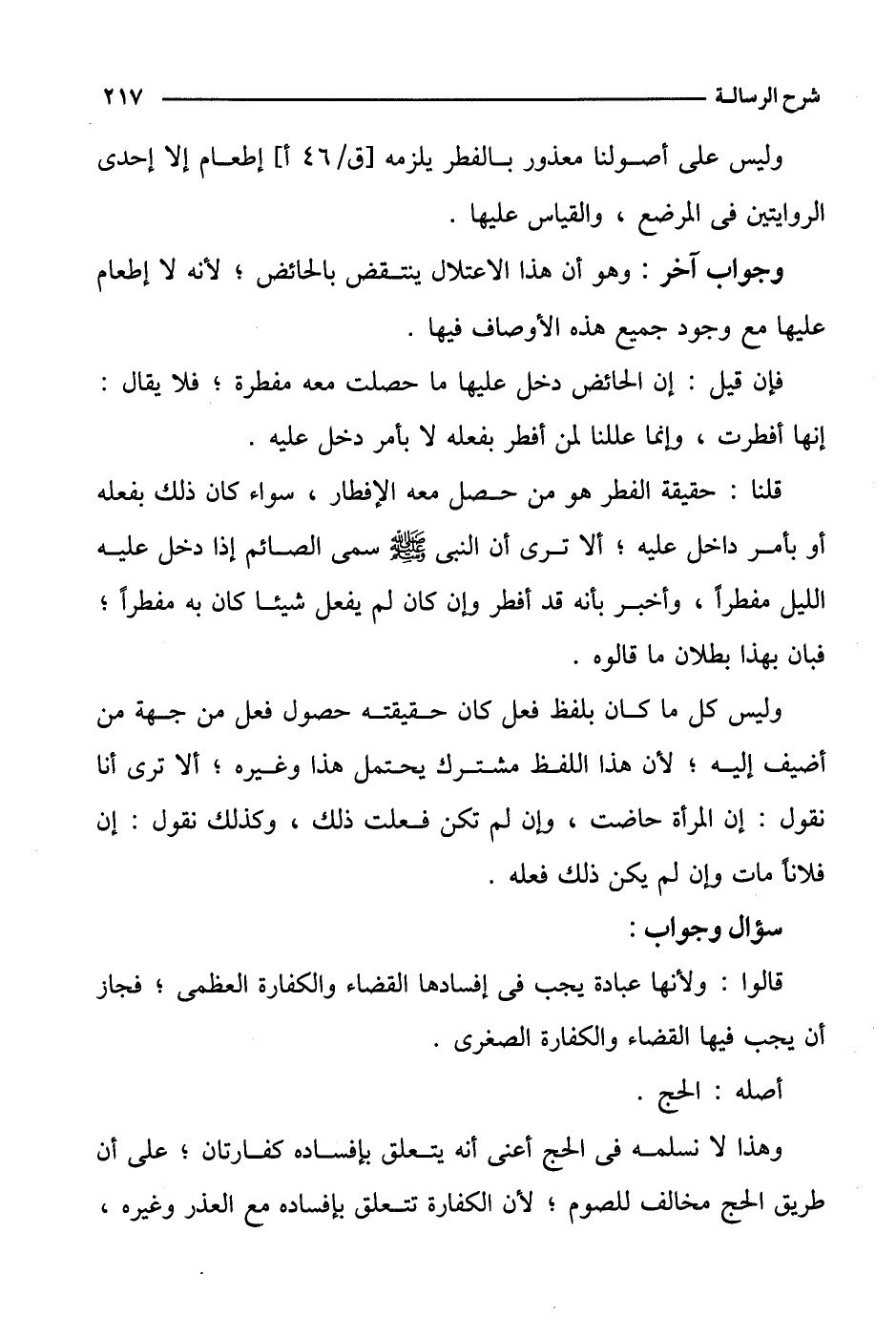 وجواب آخر: وهو أن هذا الاعتلال ينتقض بالحائض؛ لأنه لا إطعام عليها مع وجود جميع هذه الأوصاف فيها.