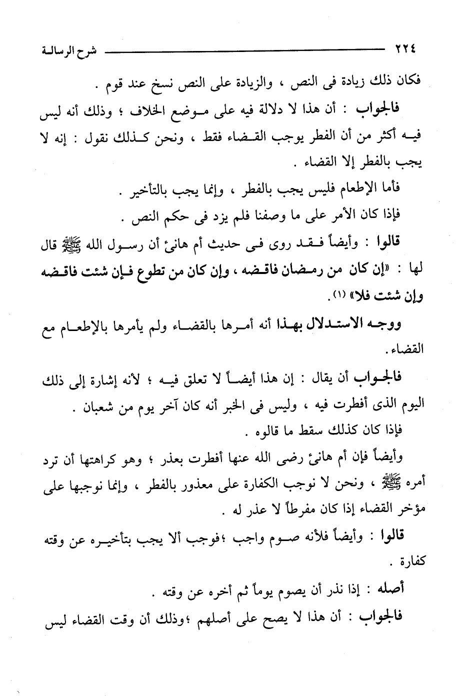 وأيضا فإن أم هانئ رضي الله عنها أفطرت بعذر؛ وهو كراهتها أن ترد أمره صلى الله عليه وسلم، ونحن لا نوجب الكفارة على معذور بالفطر، وإنما نوجبها على مؤخر القضاء إذا كان مفرطا لا عذر له.