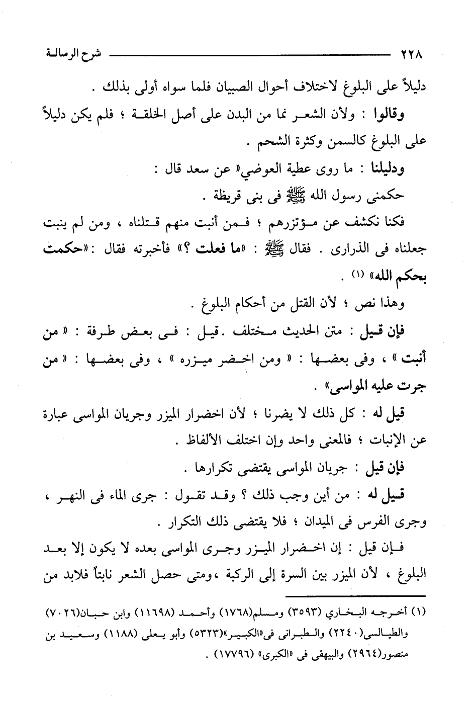 فكنا نكشف عن مؤتزرهم؛ فمن أنبت منهم قتلناه، ومن لم ينبت جعلناه في الذراري. فقال صلى الله عليه وسلم: "ما فعلت؟ " فأخبرته فقال: "حكمت بحكم الله".