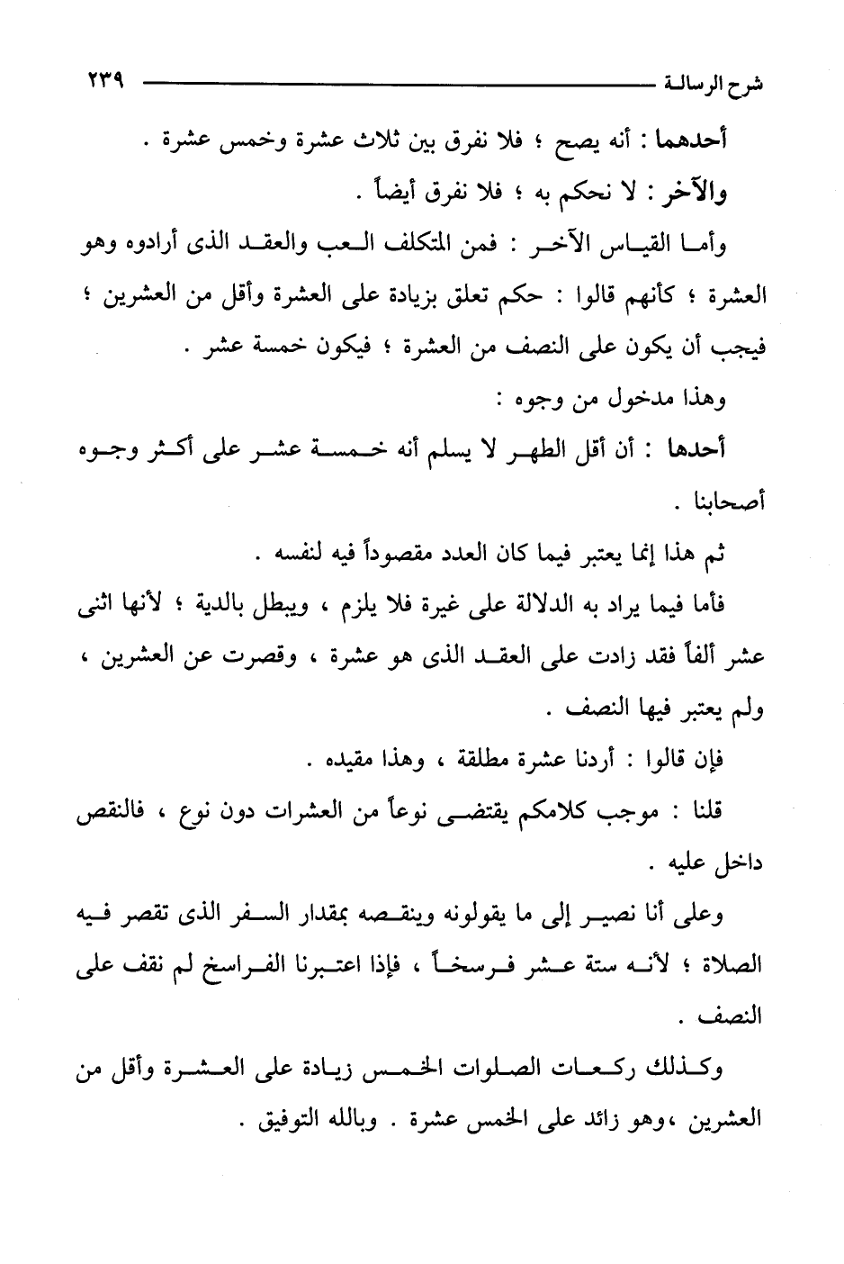 وأما القياس الآخر: فمن المتكلف العب والعقد الذي أرادوه وهو العشرة؛ كأنهم قالوا: حكم تعلق بزيادة على العشرة وأقل من العشرين؛ فيجب أن يكون على النصف من العشرة؛ فيكون خمسة عشر.