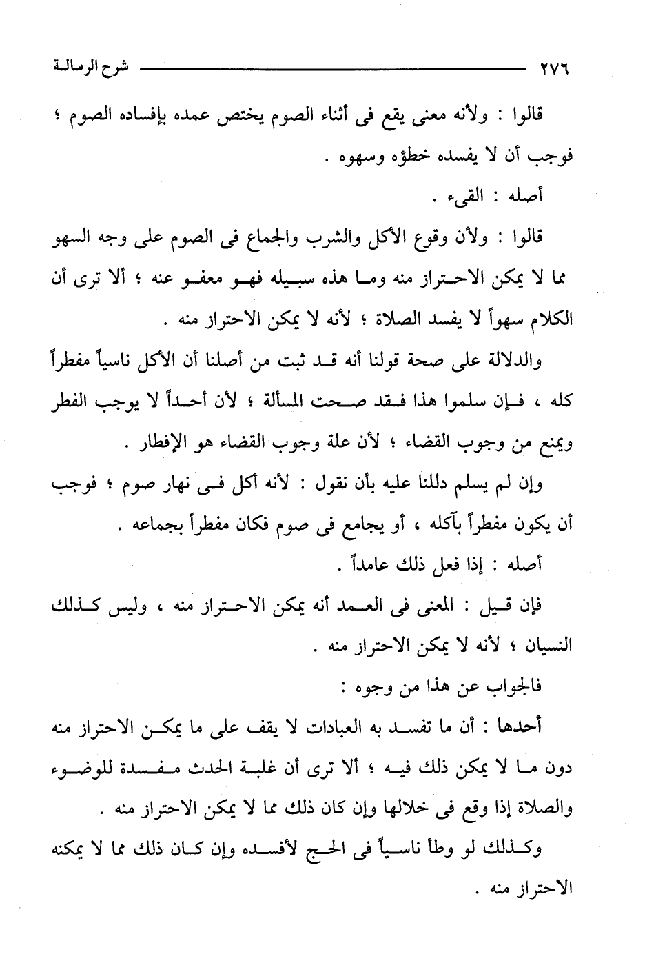 قالوا: ولأن وقوع الأكل والشرب والجماع في الصوم على وجه السهو مما لا يمكن الاحتراز منه وما هذه سبيله فهو معفو عنه؛ ألا ترى أن الكلام سهوا لا يفسد الصلاة؛ لأنه لا يمكن الاحتراز منه.