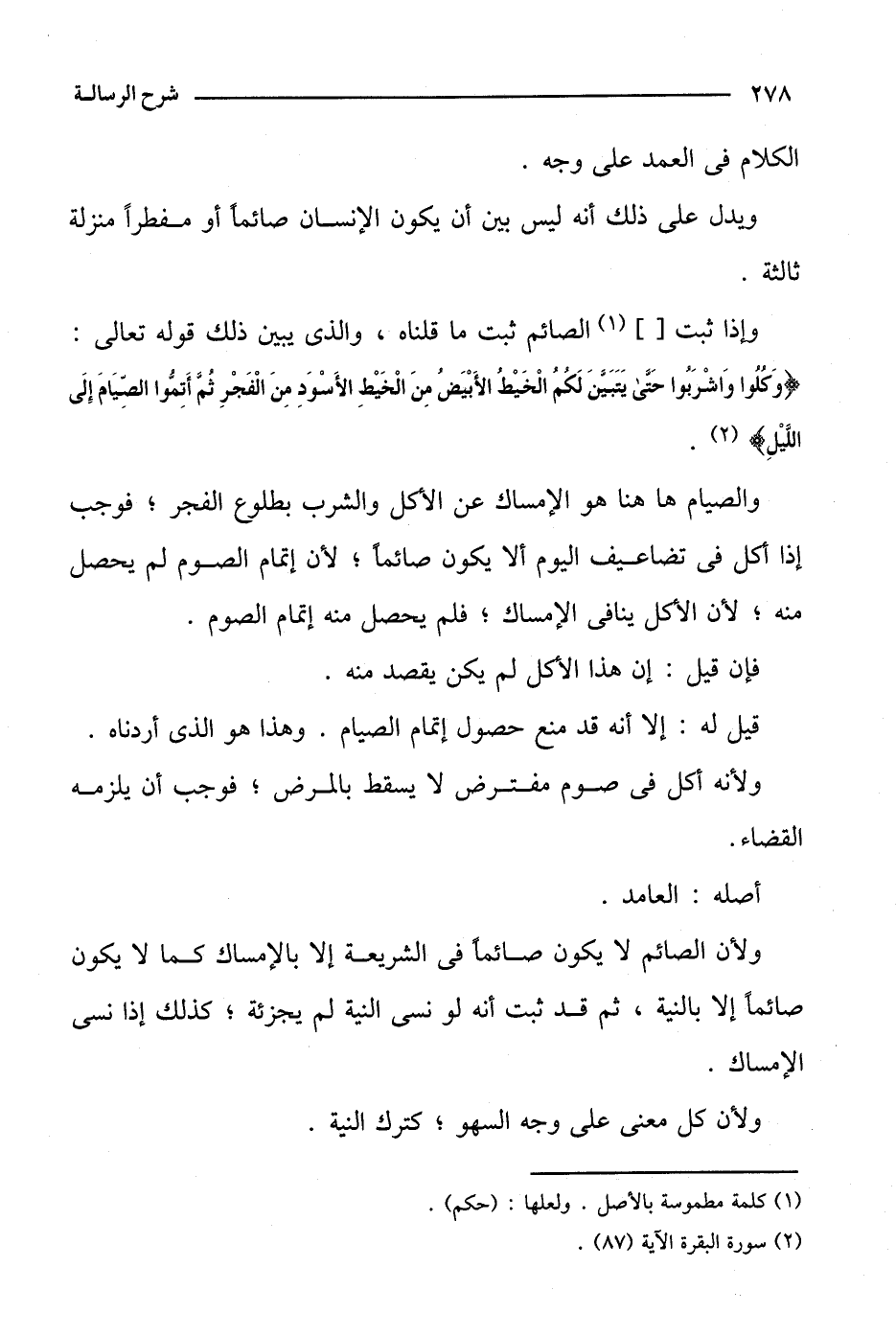 ويدل على ذلك أنه ليس بين أن يكون الإنسان صائما أو مفطرا منزلة ثالثة.