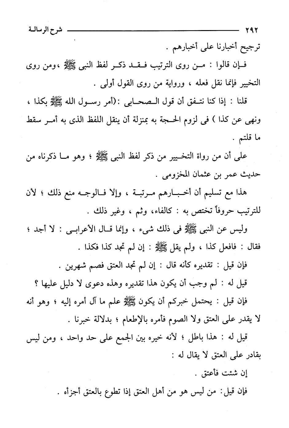 فإن قالوا: من روى الترتيب فقد ذكر لفظ النبي صلى الله عليه وسلم، ومن روى التخيير فإنما نقل فعله، ورواية من روى القول أولى.