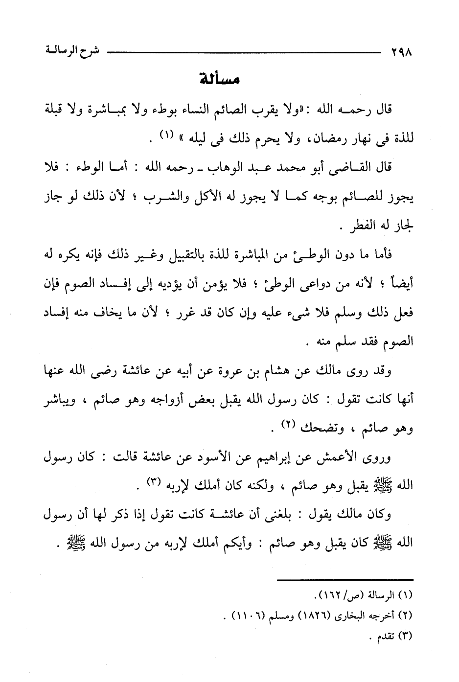 قال رحمه الله: "ولا يقرب الصائم النساء بوطء ولا بمباشرة ولا قبلة للذة في نهار رمضان، ولا يحرم ذلك في ليله".