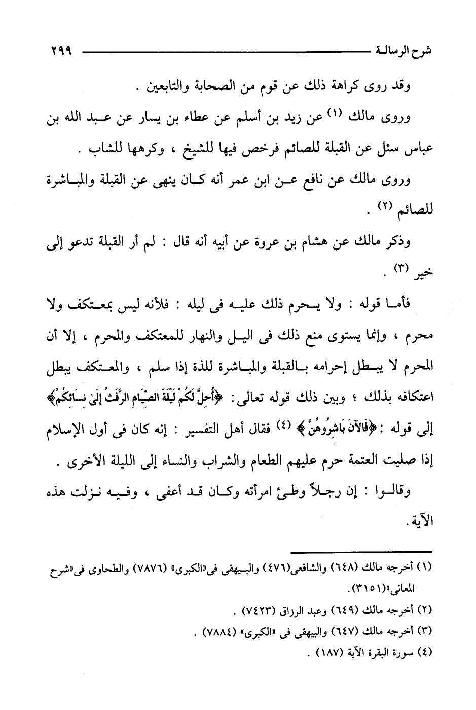 وروى مالك عن زيد بن أسلم عن عطاء بن يسار عن عبد الله بن عباس سئل عن القبلة للصائم فرخص فيها للشيخ، وكرهها للشاب.
