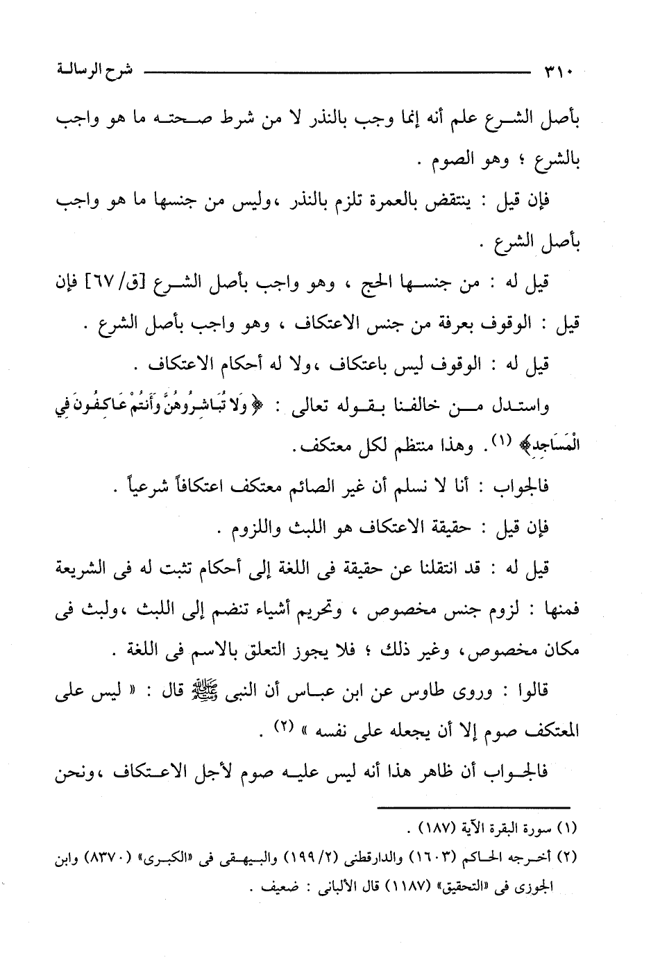 قيل له: من جنسها الحج، وهو واجب بأصل الشرع [ق/67] فإن قيل: الوقوف بعرفة من جنس الاعتكاف، وهو واجب بأصل الشرع.