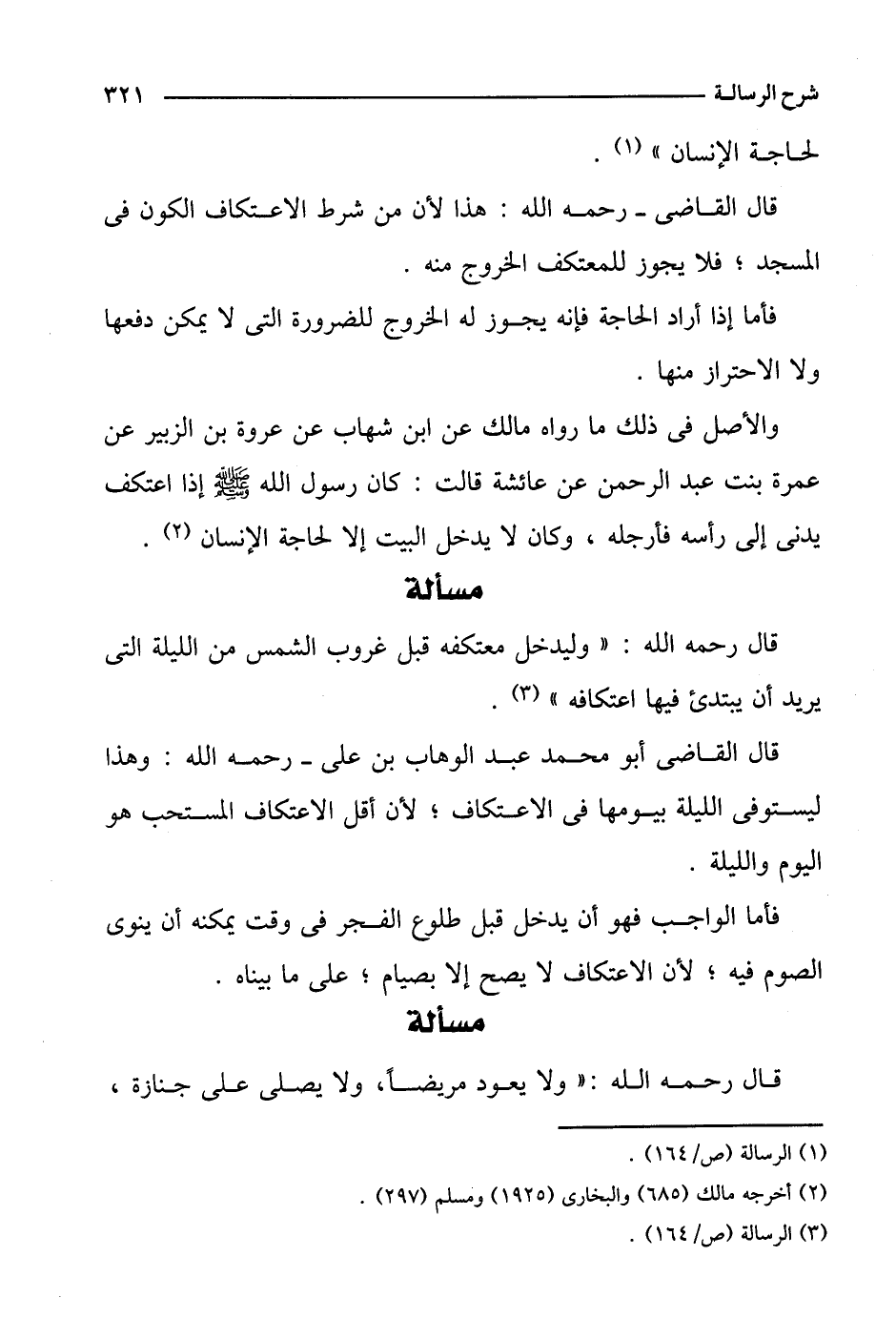 فأما إذا أراد الحاجة فإنه يجوز له الخروج للضرورة التي لا يمكن دفعها ولا الاحتراز منها.