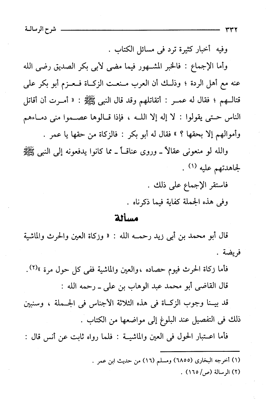 قال أبو محمد بن أبي زيد رحمه الله: "وزكاة العين والحرث والماشية فريضة.