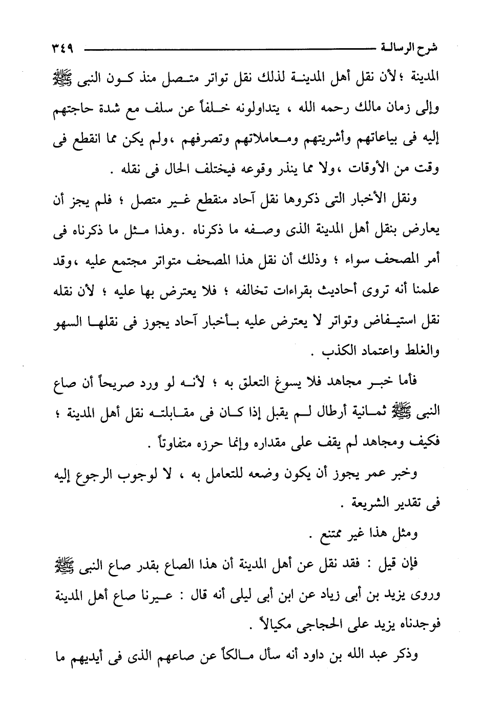 ونقل الأخبار التي ذكروها نقل آحاد منقطع غير متصل؛ فلم يجز أن يعارض بنقل أهل المدينة الذي وصفه ما ذكرناه. وهذا مثل ما ذكرناه في أمر المصحف سواء؛ وذلك أن نقل هذا المصحف متواتر مجتمع عليه، وقد علمنا أنه تروى أحاديث بقراءات تخالفه؛ فلا يعترض بها عليه؛ لأن نقله نقل استيفاض وتواتر لا يعترض عليه بأخبار آحاد يجوز في نقلها السهو والغلط واعتماد الكذب.