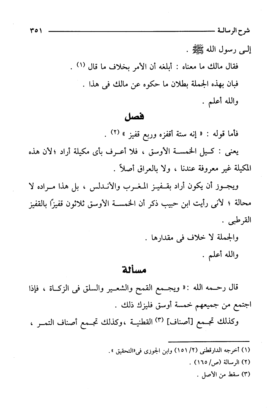ويجوز أن يكون أراد بقفيز المغرب والأندلس، بل هذا مراده لا محالة؛ لأني رأيت ابن حبيب ذكر أن الخمسة الأوسق ثلاثون قفيزا بالقفيز القرطبي.