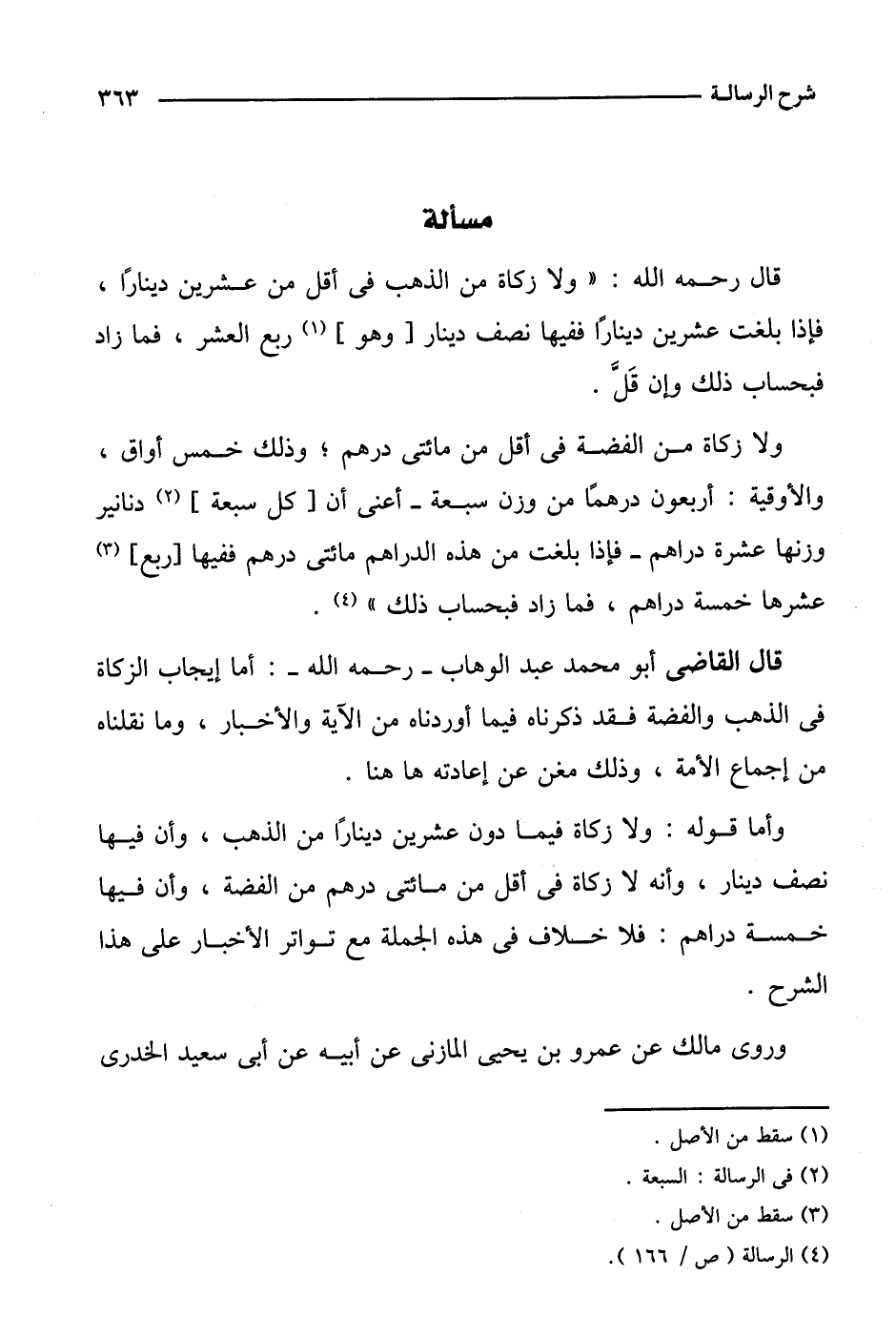 قال القاضي أبو محمد عبد الوهاب- رحمه الله-: أما إيجاب الزكاة في الفضة والذهب فقد ذكرناه فيما أوردنا من الآية والأخبار، وما نقلناه من إجماع الأمة، وذلك مغن عن إعادته ها هنا.
