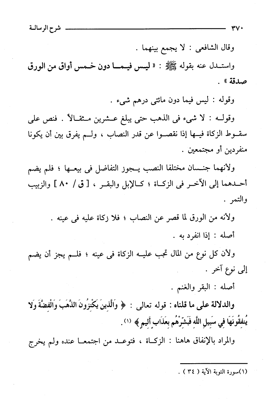 ولأنه من الورق لما قصر عن النصاب؛ فلا زكاة عليه في عينه.