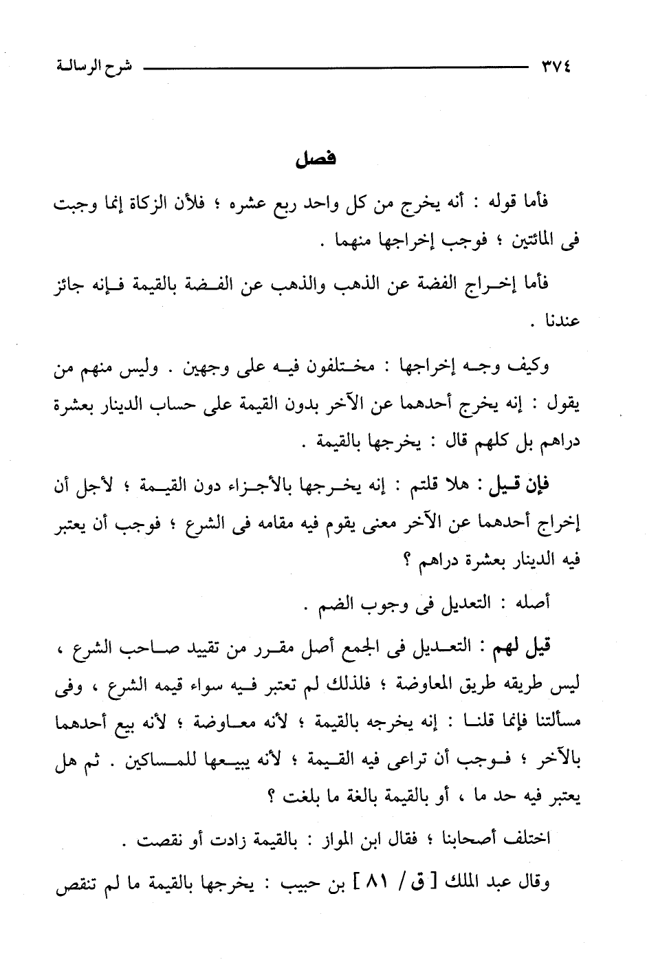 وقال عبد الملك [ق/81] بن حبيب: يخرجها بالقيمة ما لم تنقص
