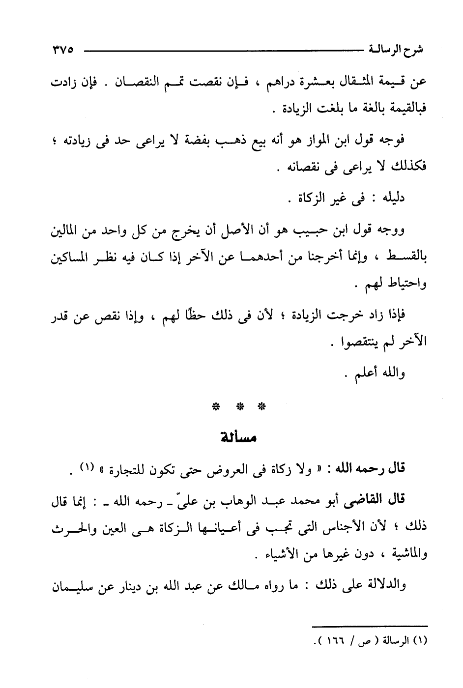 قال القاضي أبو محمد عبد الوهاب بن علي- رحمه الله-: إنما قال ذلك؛ لأن الأجناس التي تجب في أعيانها الزكاة هي العين والحرث والماشية، دون غيرها من الأشياء.