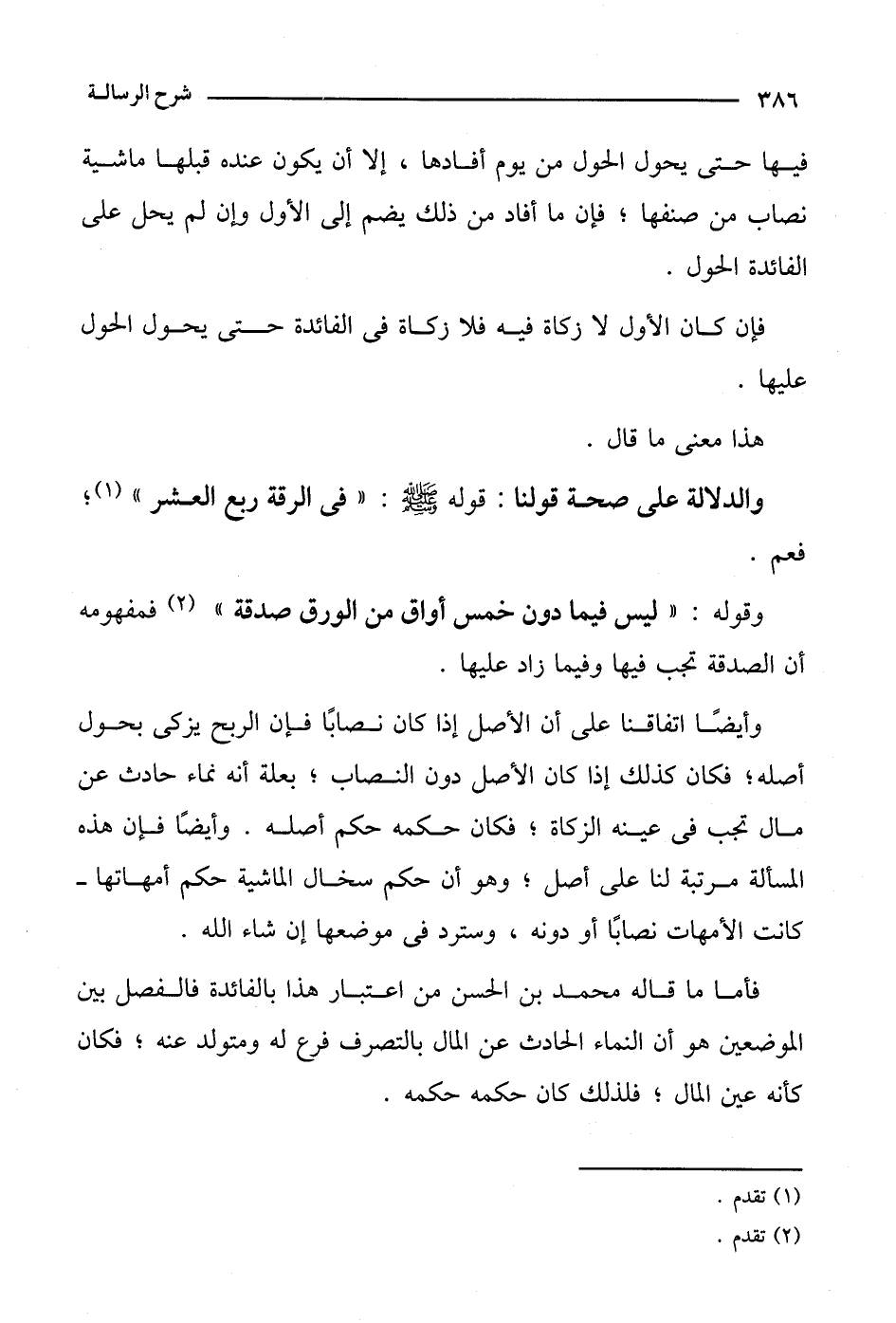 فأما ما قاله محمد بن الحسن من اعتبار هذا بفائدة فالفصل بين الموضعين هو أن النماء الحادث عن المال بالتصرف فرع له ومتولد عنه؛ فكان كأنه عين المال؛ فلذل كان حكمه حكمه.