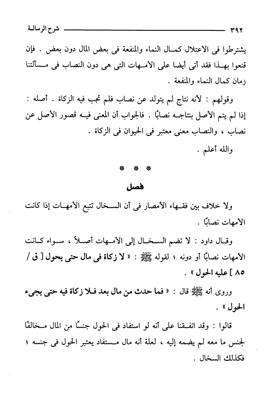 يشترطوا في الاعتلال كمال النماء والمنفعة في بعض المال دون بعض. فإن قنعوا بهذا فقد أتى أيض على الأمهات التي دون النصاب في مسألتنا زمان كمال النماء والمنفعة.