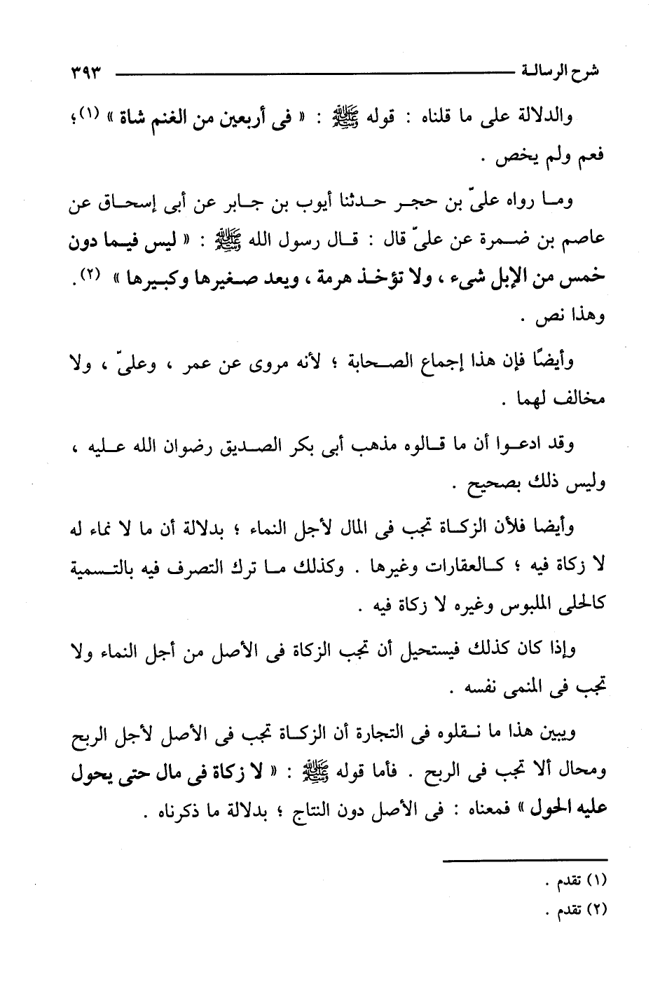 ويبين هذا ما نقلوه في التجارة أن الزكاة تجب في الأصل لأجل الربح ومحال ألا تجب في الربح. فأما قوله صلى الله عليه وسلم: "لا زكاة في مال حتى يحول عليه الحول" فمعناه: في الأصل دون النتاج؛ بدلالة ما ذكرناه.