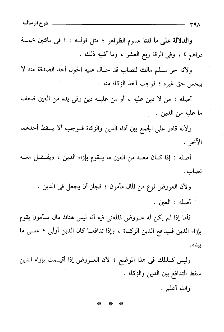 وليس كذلك في هذا الموضع؛ لأن العروض إذا أقيمت بإزاء الدين سقط التدافع بين الدين والزكاة.