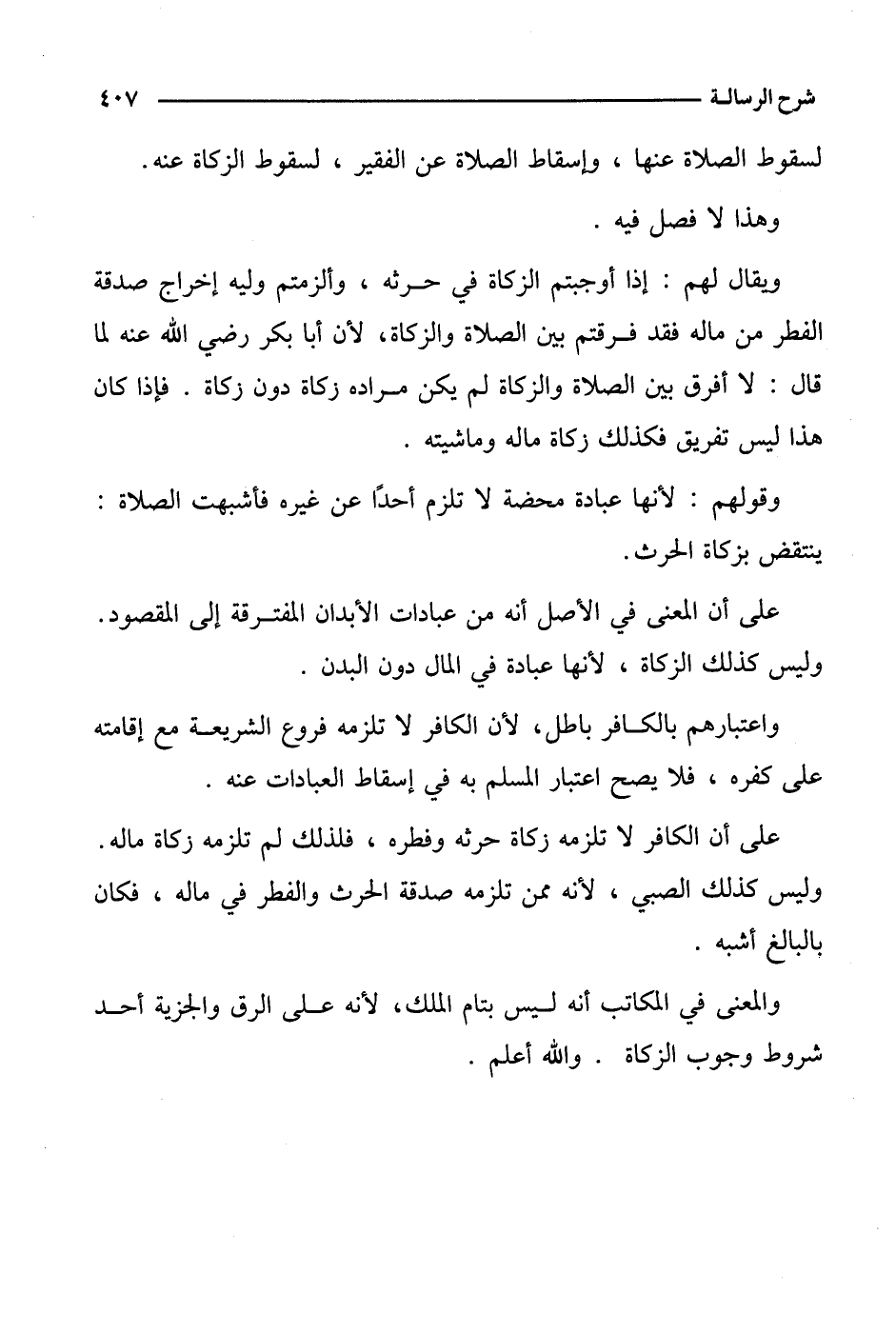 ويقال لهم: إذا أوجبتم الزكاة في حرثه، وألزمتم وليه إخراج صدقة الفطر من ماله فقد فرقتم بين الصلاة والزكاة، لأن أبا بكر رضي الله عنه لما قال: لا أفرق بين الصلاة والزكاة لم يكن مراده زكاة دون زكاة. فإذا كان هذا ليس تفريق فكذلك زكاة ماله وماشيته.