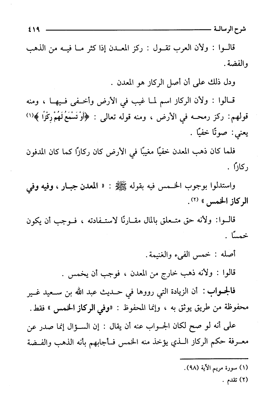 ودل ذلك على أن أصل الركاز هو المعدن.