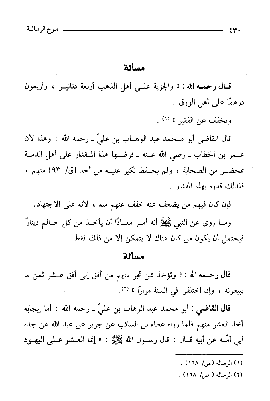 قال القاضي أبو محمد عبد الوهاب بن علي- رحمه الله: وهذا لأن عمر بن الخطاب- رضي الله عنه- فرضها هذا المقدار على أهل الذمة بمحضر من الصحابة، ولم يحتفظ نكير عليه من أحد [ق/93] منهم، فلذلك قدره بهذا القدر.