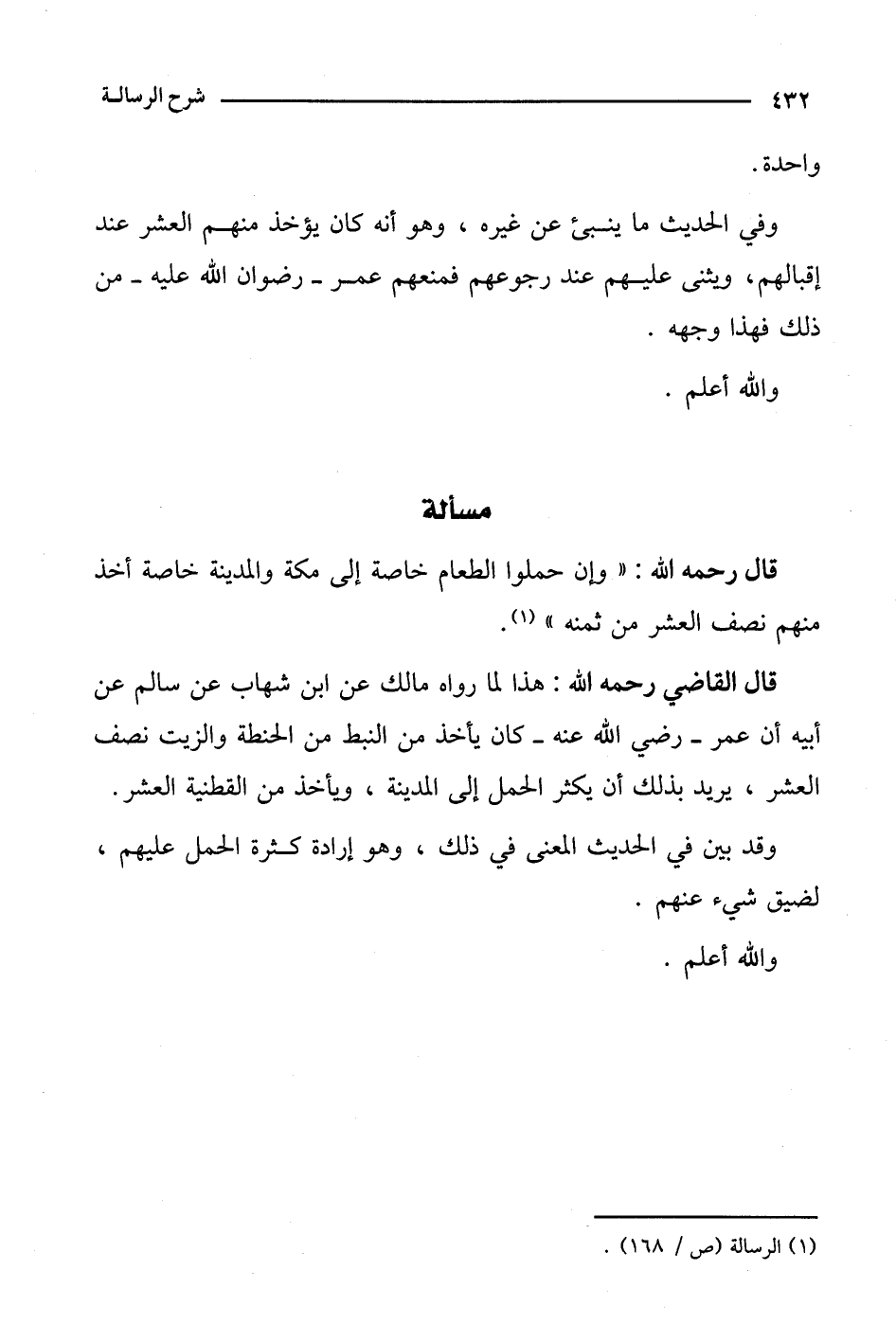 قال القاضي رحمه الله: هذا لما رواه مالك عن ابن شهاب عن سالم عن أبيه أن عمر- رضي الله عنه- كان يأخذ من النبط من الحنطة والزيت نصف العشر، يريد بذلك أن يكثر الحمل إلى المدينة، ويأخذ من القطنية العشر.