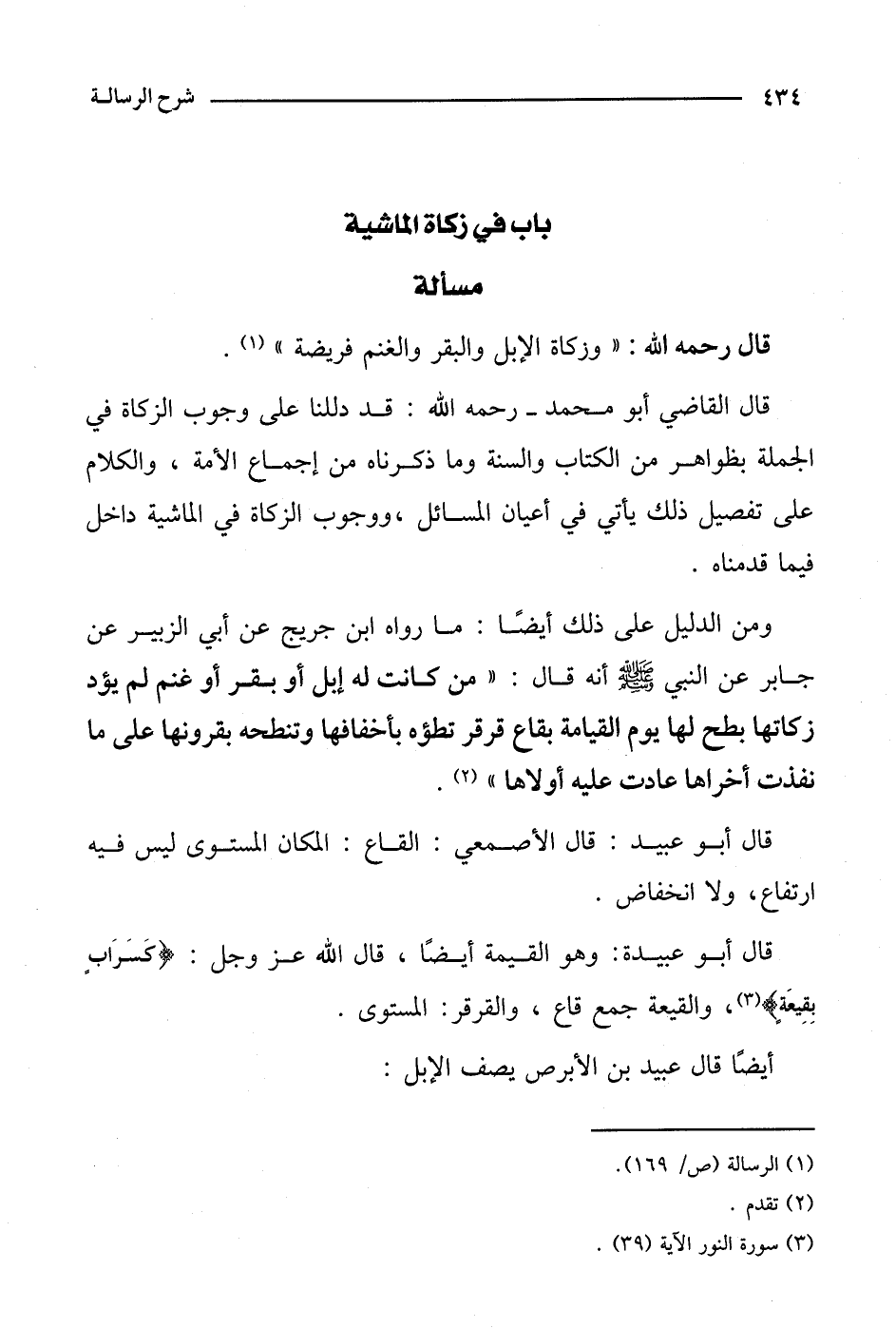 قال القاضي أبو محمد- رحمه الله: قد دللنا على وجوب الزكاة في الجملة بظواهر من الكتاب والسنة وما ذكرناه من إجماع الأمة، والكلام على تفصيل ذلك يأتي في أعيان المسائل، ووجوب الزكاة في الماشية داخل فيما قدمناه.