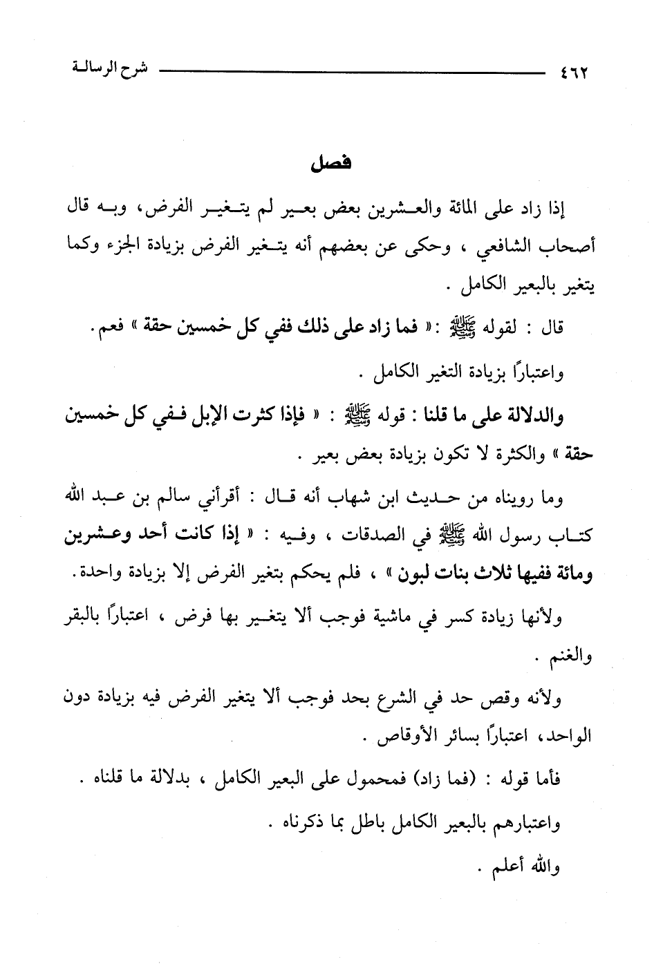 وما رويناه من حديث ابن شهاب أنه قال: أقرأني سالم بن عبد الله كتاب رسول الله صلى الله عليه وسلم في الصدقات، وفيه: "إذا كانت أحد وعشرين ومائة ففيها ثلاث بنات لبون"، فلم يحكم بتغير الفرض إلا بزيادة واحدة.