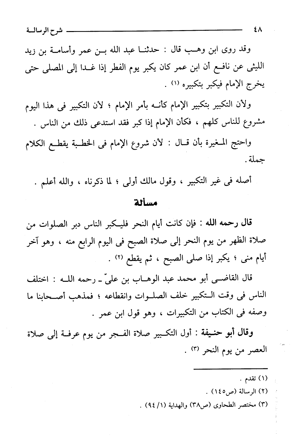 قال القاضي أبو محمد عبد الوهاب بن علي- رحمه الله: اختلف الناس في وقت التكبير خلف الصلوات وانقطاعه؛ فمذهب أصحابنا ما وصفه في الكتاب من التكبيرات، وهو قول ابن عمر.