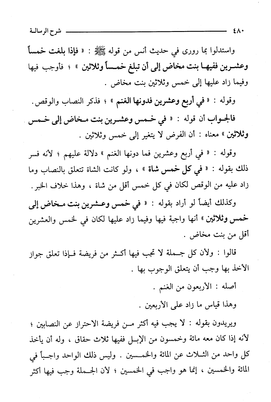 واستدلوا بما روي في حديث أنس من قوله صلى الله عليه وسلم: "فإذا بلغت خمسا وعشرين ففيها بنت مخاض إلى أن تبلغ خمسا وثلاثين"؛ فأوجب فيها وفيما زاد عليها إلى خمس وثلاثين بنت مخاض.