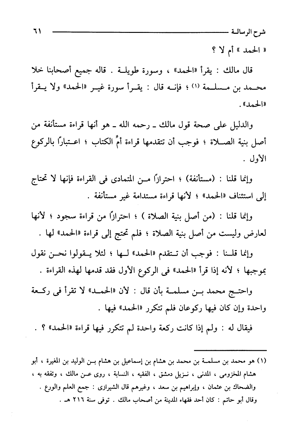 وإنما قلنا: (مستأنفة)؛ احترازا من المتمادي في القراءة فإنها لا تحتاج إلى استئناف "الحمد"؛ لأنها قراءة مستدامة غير مستأنفة.