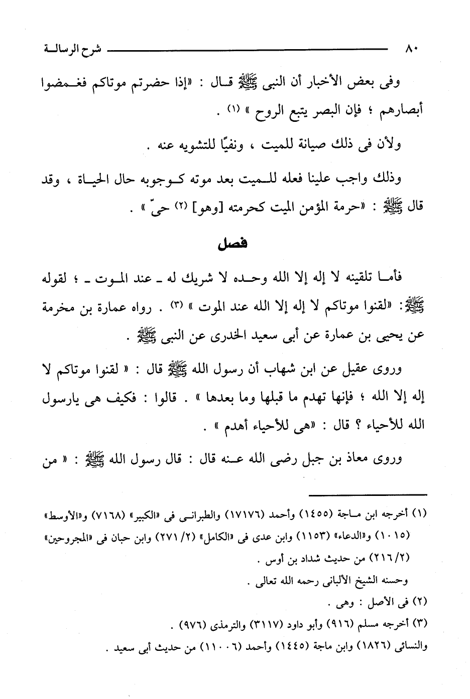 فأما تلقينه لا إله إلا الله وحده لا شريك له- عند الموت-؛ لقوله صلى الله عليه وسلم: "لقنوا موتاكم لا إله إلا الله عند الموت". رواه عمارة بن مخرمة عن يحيى بن عمارة عن أبي سعيد الخدري عن النبي صلى الله عليه وسلم.